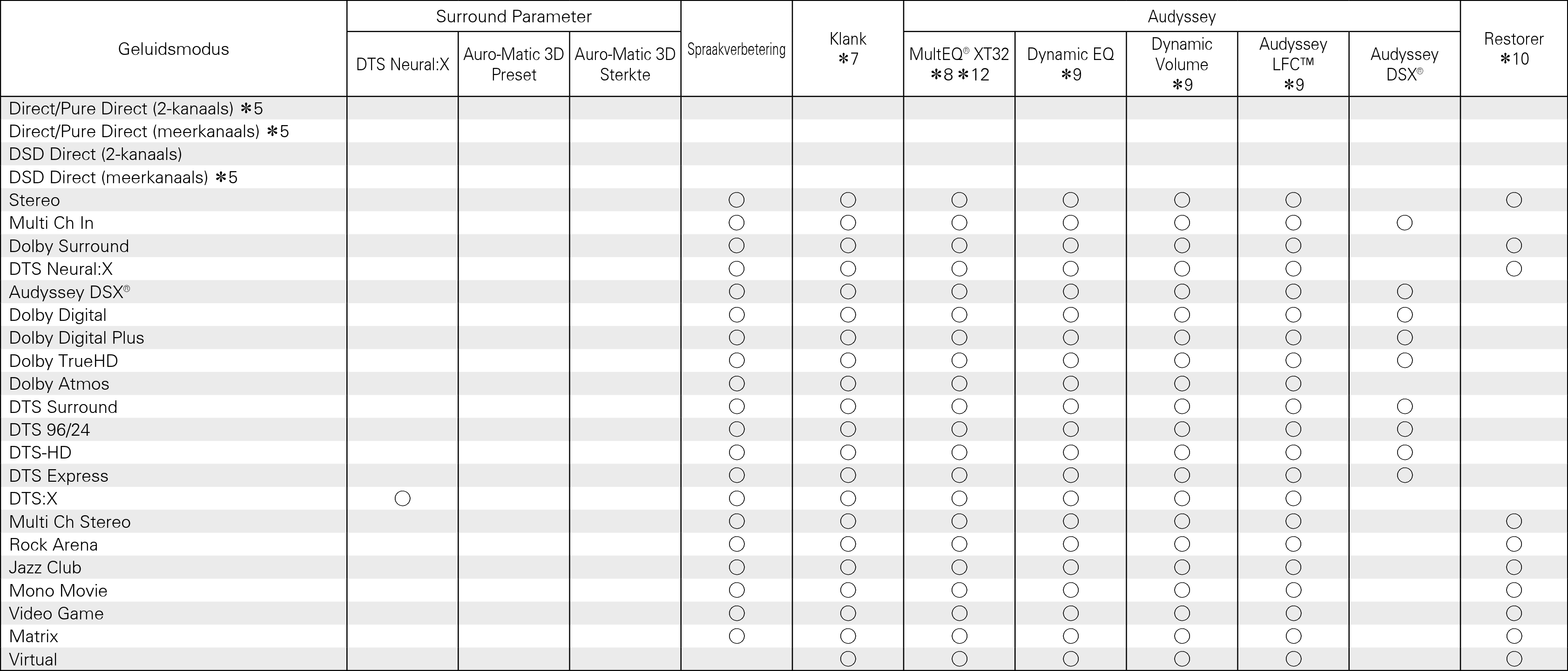 Geluidsmodi en surround-parameters