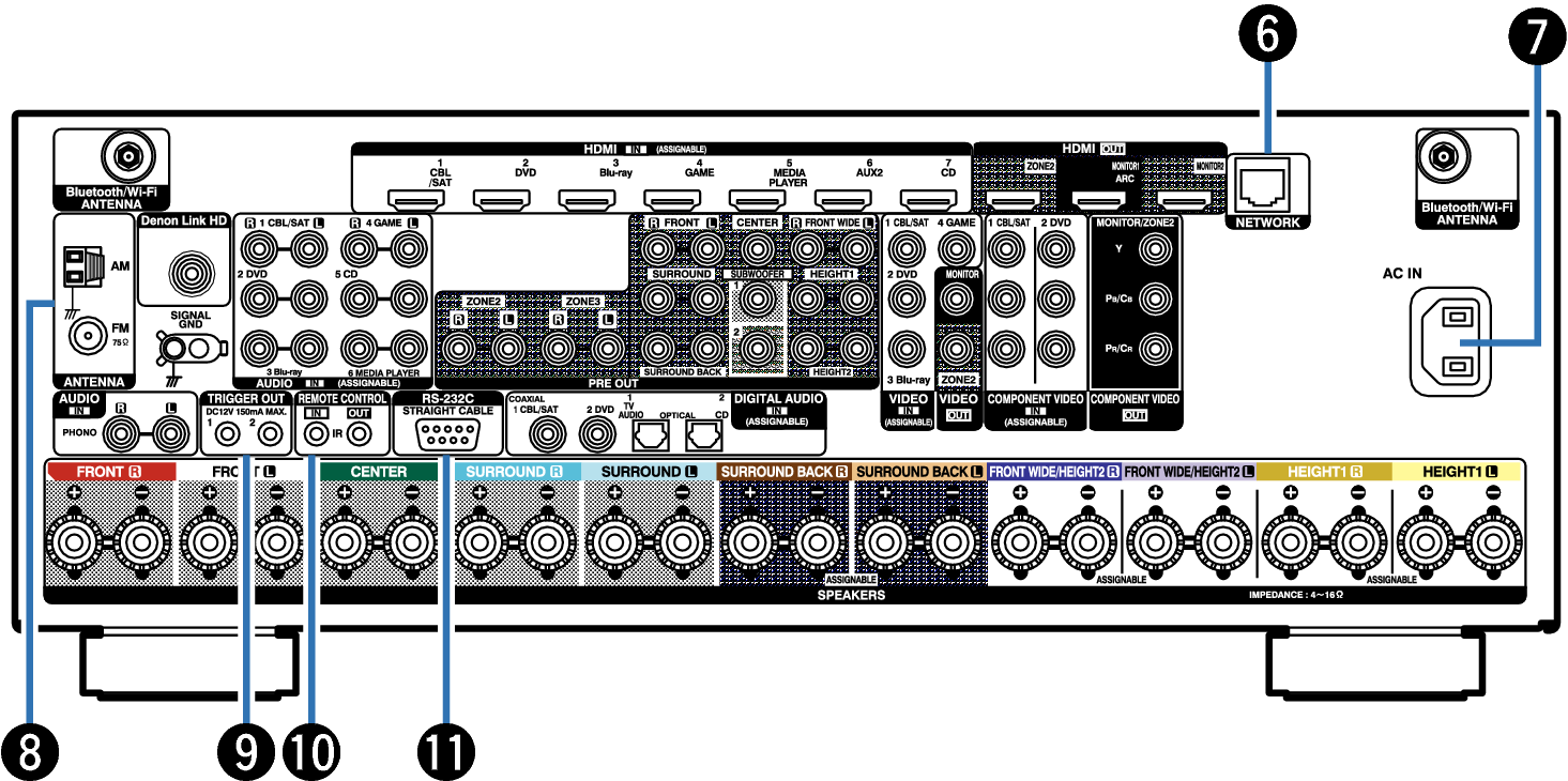 Se utiliza para conectar dispositivos controladores de automatización del hogar provistos de conectores RS-232C. Consulte el manual del propietario del controlador de automatización doméstico para obtener más información sobre el puerto serie de esta unidad.