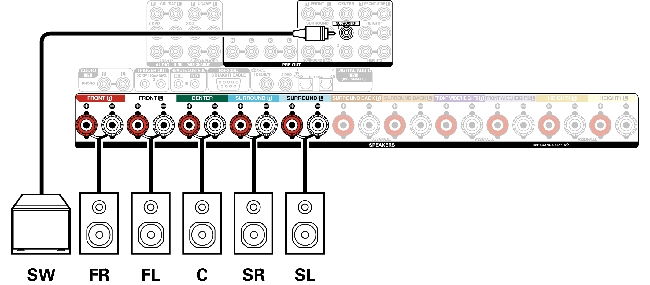 Establezca “Suelo” - “Distribución” en “5ch & SB & FW” en el menú cuando realice la conexión en esta configuración. enlace