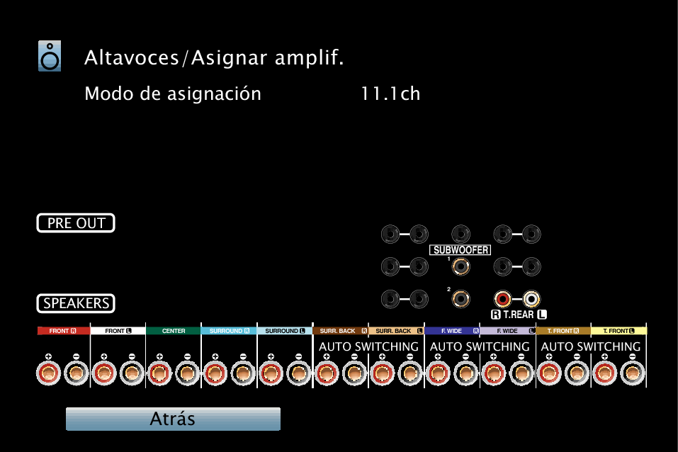 Se pueden utilizar dos juegos de altavoces de altura si no va a utilizar los altavoces ancho delantero. Establézcalo desde la opción “Asignar amplif.” del menú. enlace