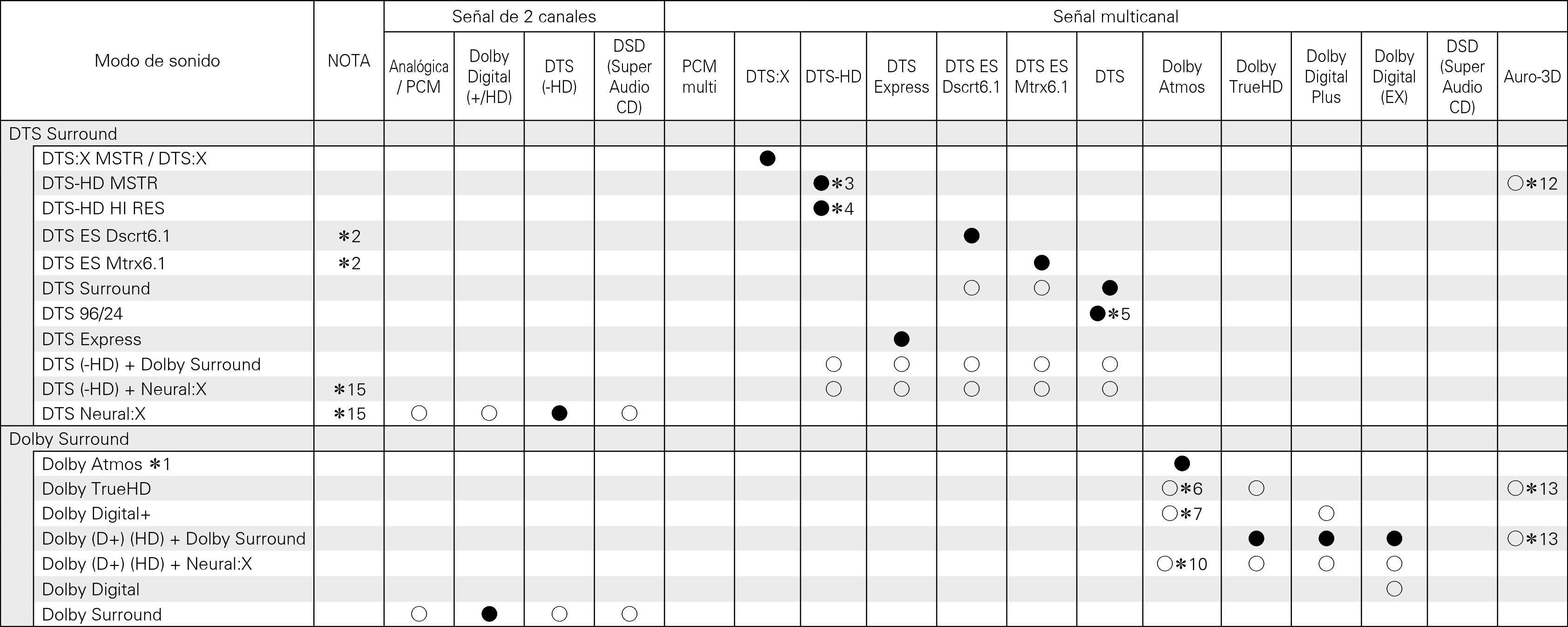 Puede seleccionarse cuando la señal Dolby Atmos contiene la señal Dolby TrueHD.