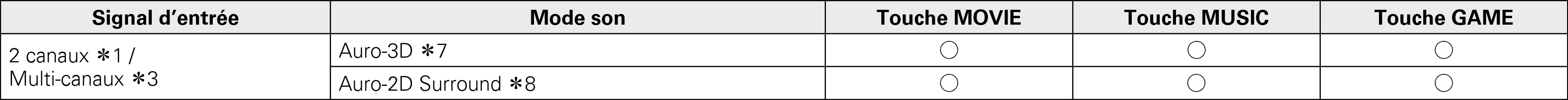 Peut être sélectionné lorsque le signal d’entrée contient pas de Dolby Atmos.