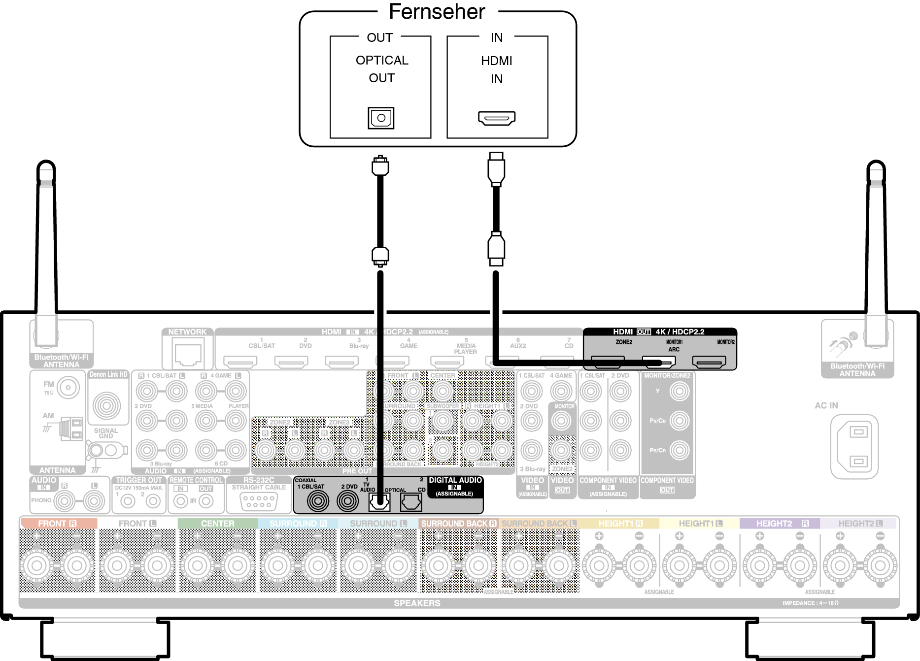 Verwenden Sie ein HDMI-Kabel, um den Fernseher an dieses Gerät anzuschließen.