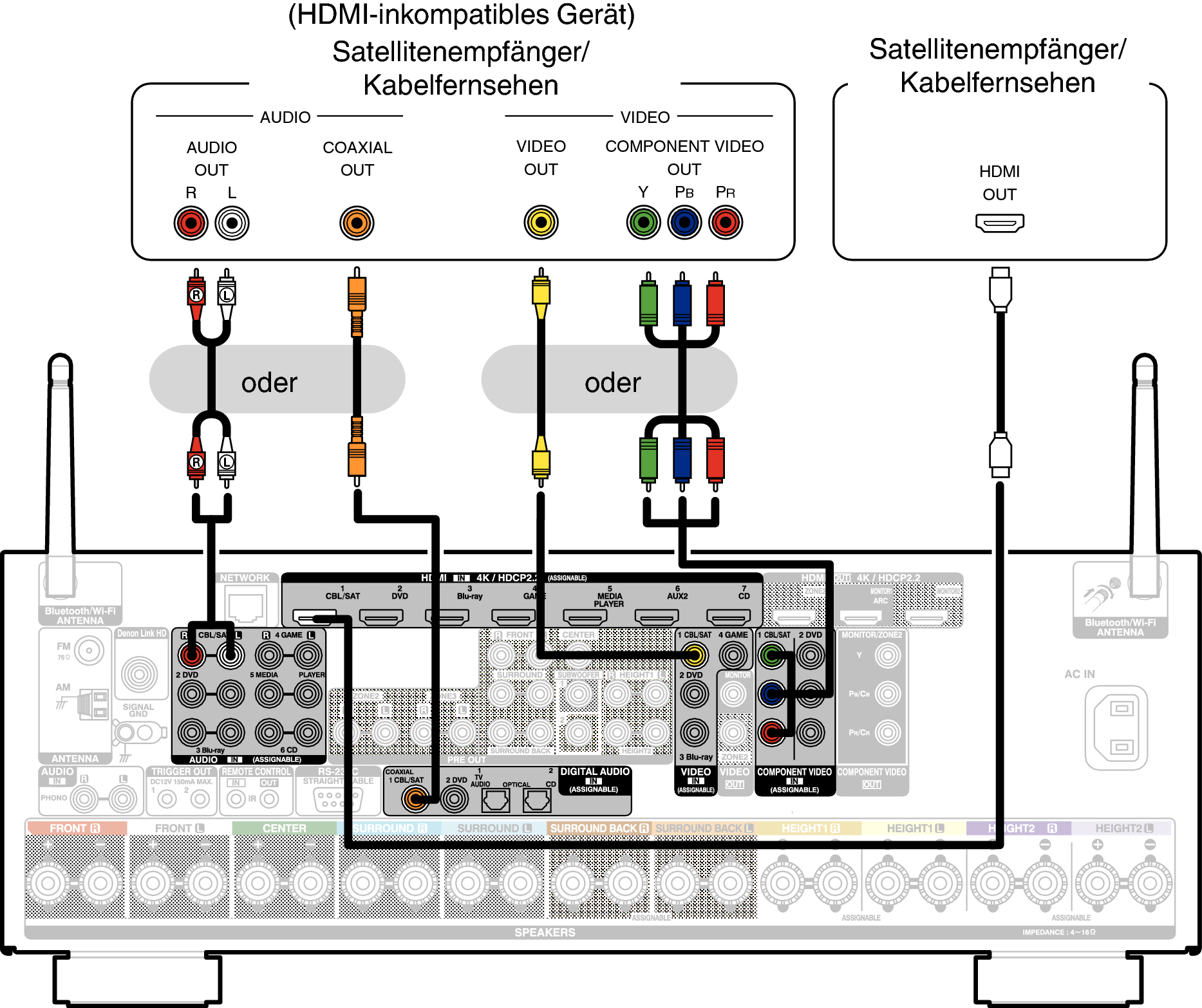 In diesem Beispiel wird der Anschluss einer Satellitenempfänger-/Kabelfernsehen-STB erläutert.