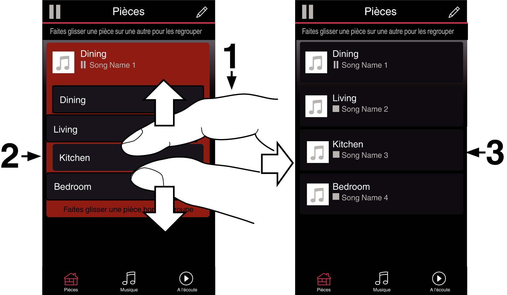 Appuyer et maintenez votre doigt sur la pièce qui ne diffuse pas de musique.