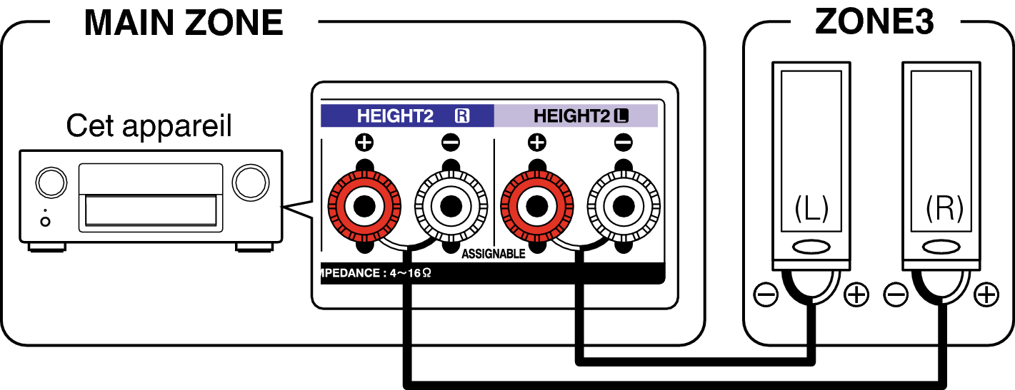 Les signaux audio des bornes de sortie audio des ZONE2 et ZONE3 de cet appareil sont émis vers les amplificateurs des ZONE2 et ZONE3 et sont lus sur ces mêmes amplificateurs.