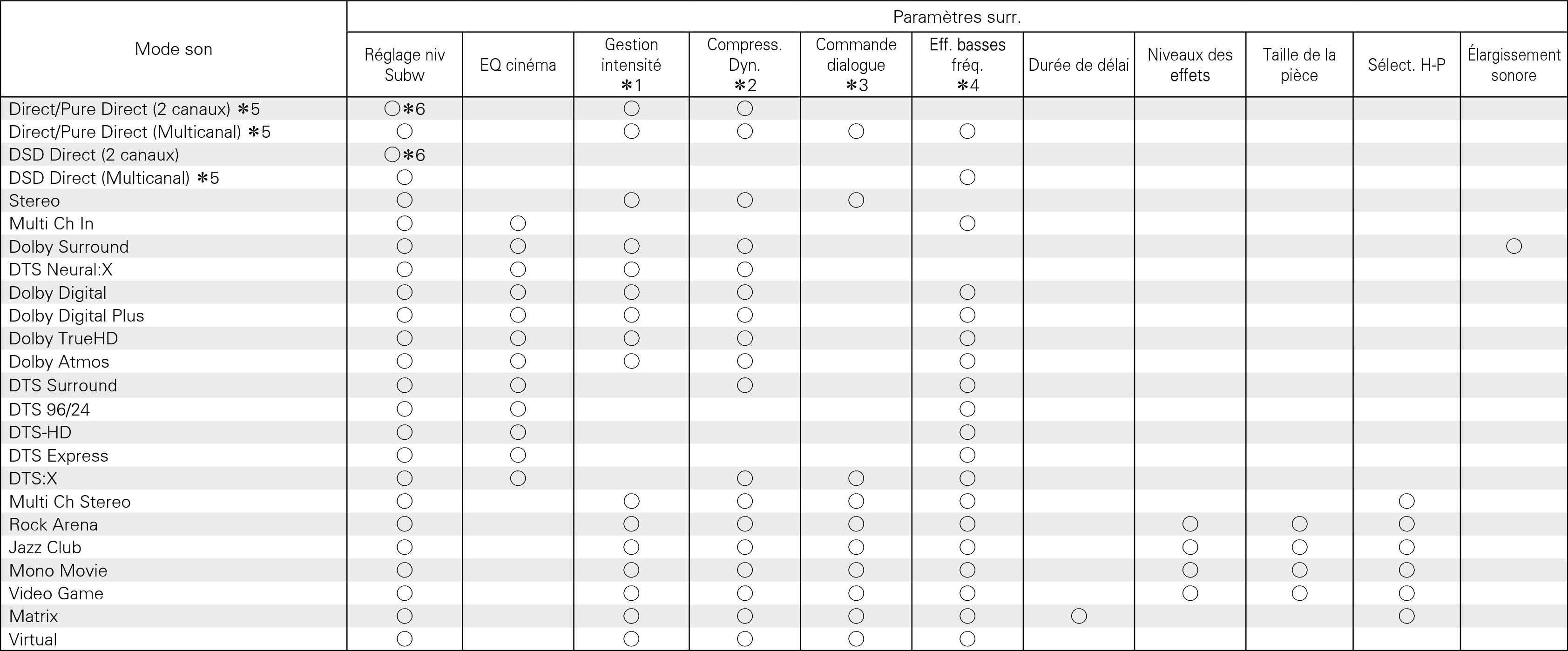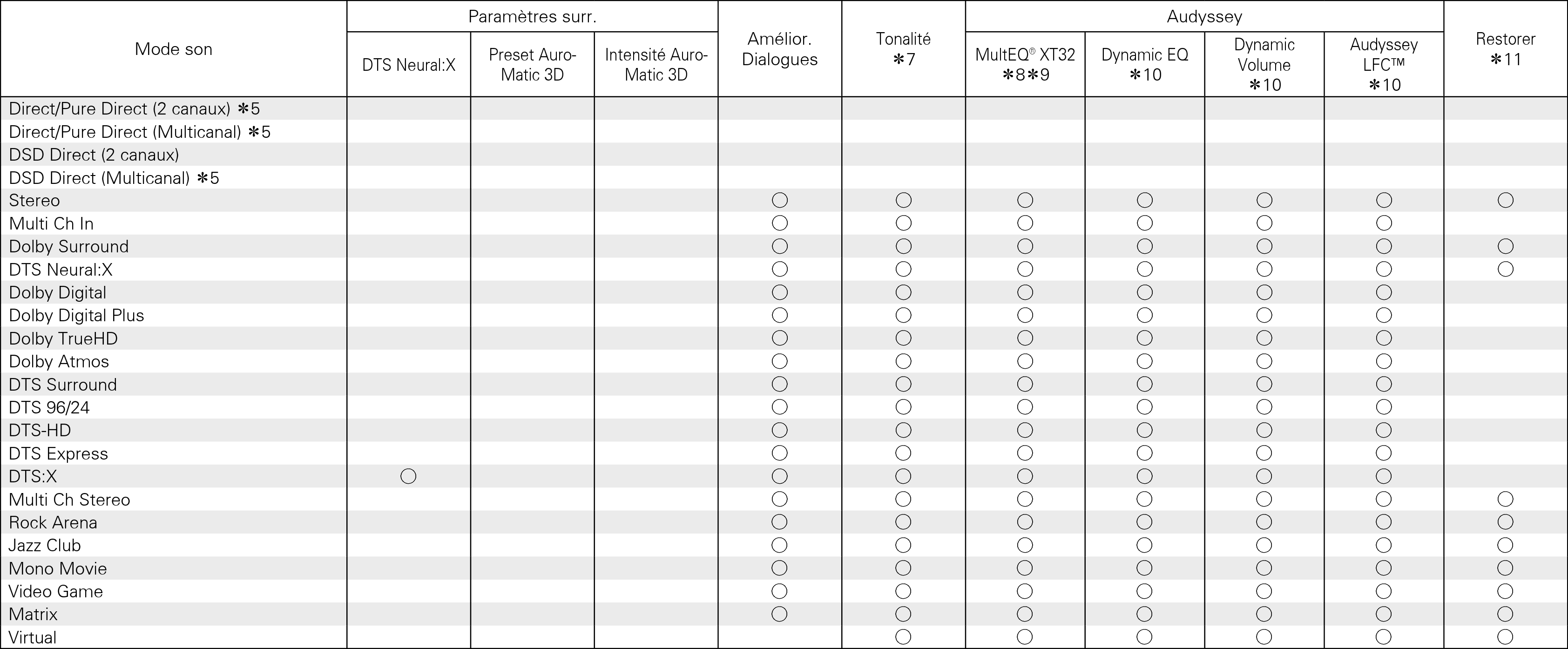 Lors de la lecture en mode Pure Direct, les paramètres surround sont identiques à ceux du mode Direct.