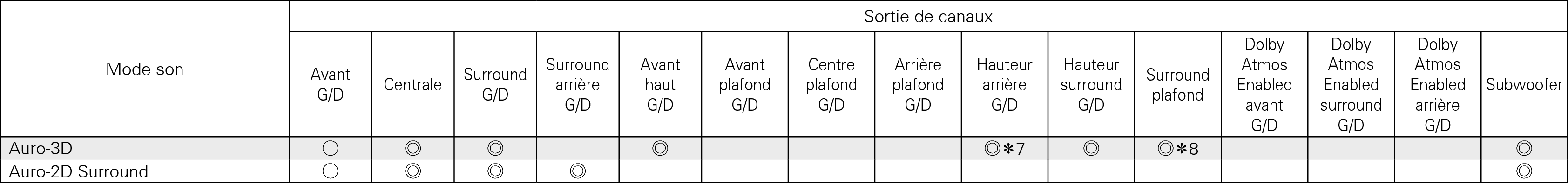 Cet élément peut être sélectionné si un signal Auro-3D est reçu et si le signal d’entrée contient des canaux supérieurs surround.
