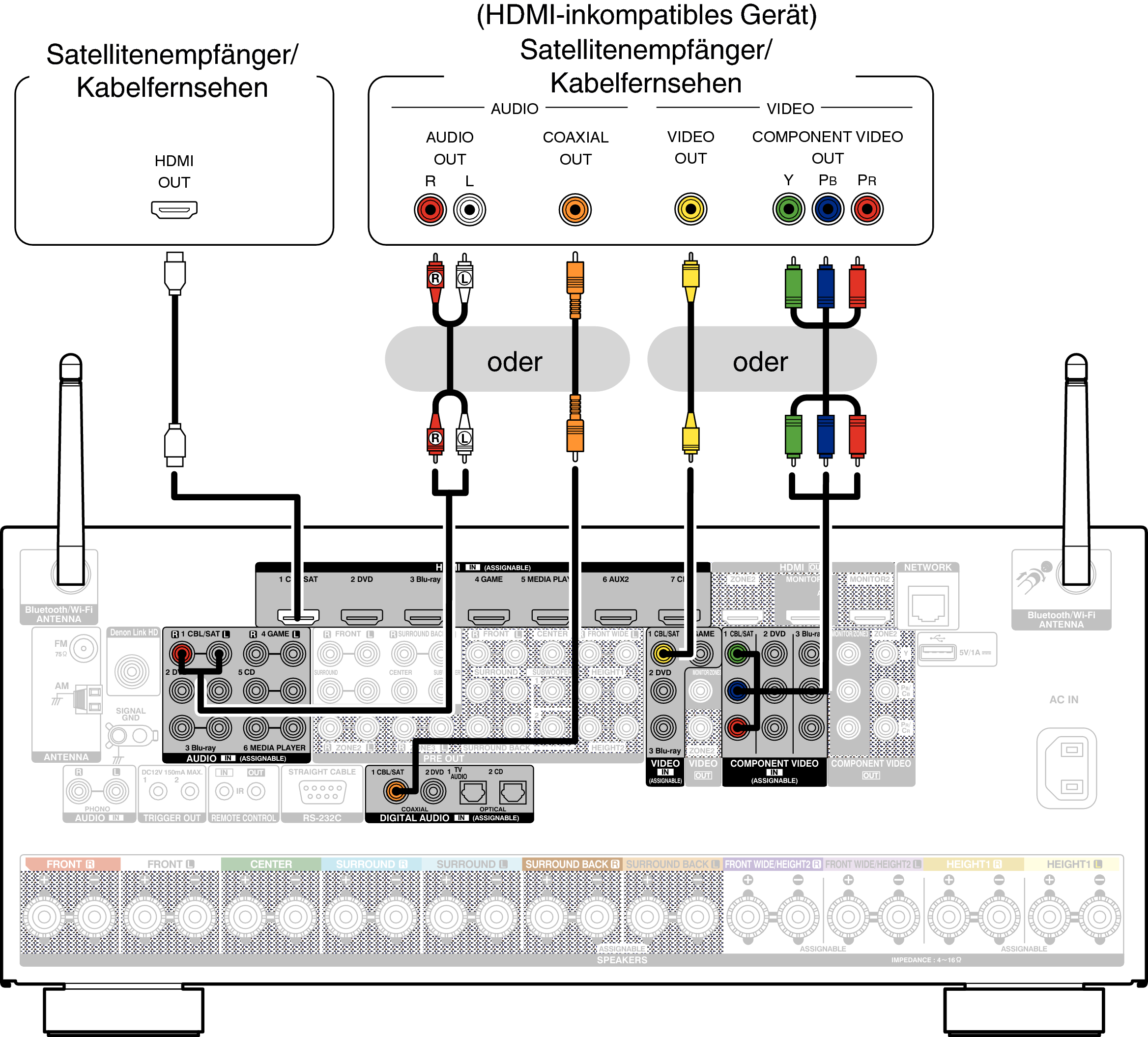 In diesem Beispiel wird der Anschluss einer Satellitenempfänger-/Kabelfernsehen-STB erläutert.