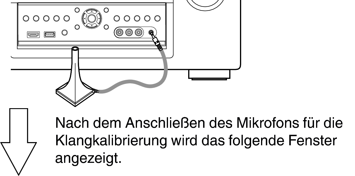 Wenn Sie das Mikrofon für die Klangkalibrierung aufstellen, richten Sie dessen Spitze zur Decke und stellen Sie die Höhe so ein, dass es sich in der Höhe der Ohren eines sitzenden Zuhörers befindet.