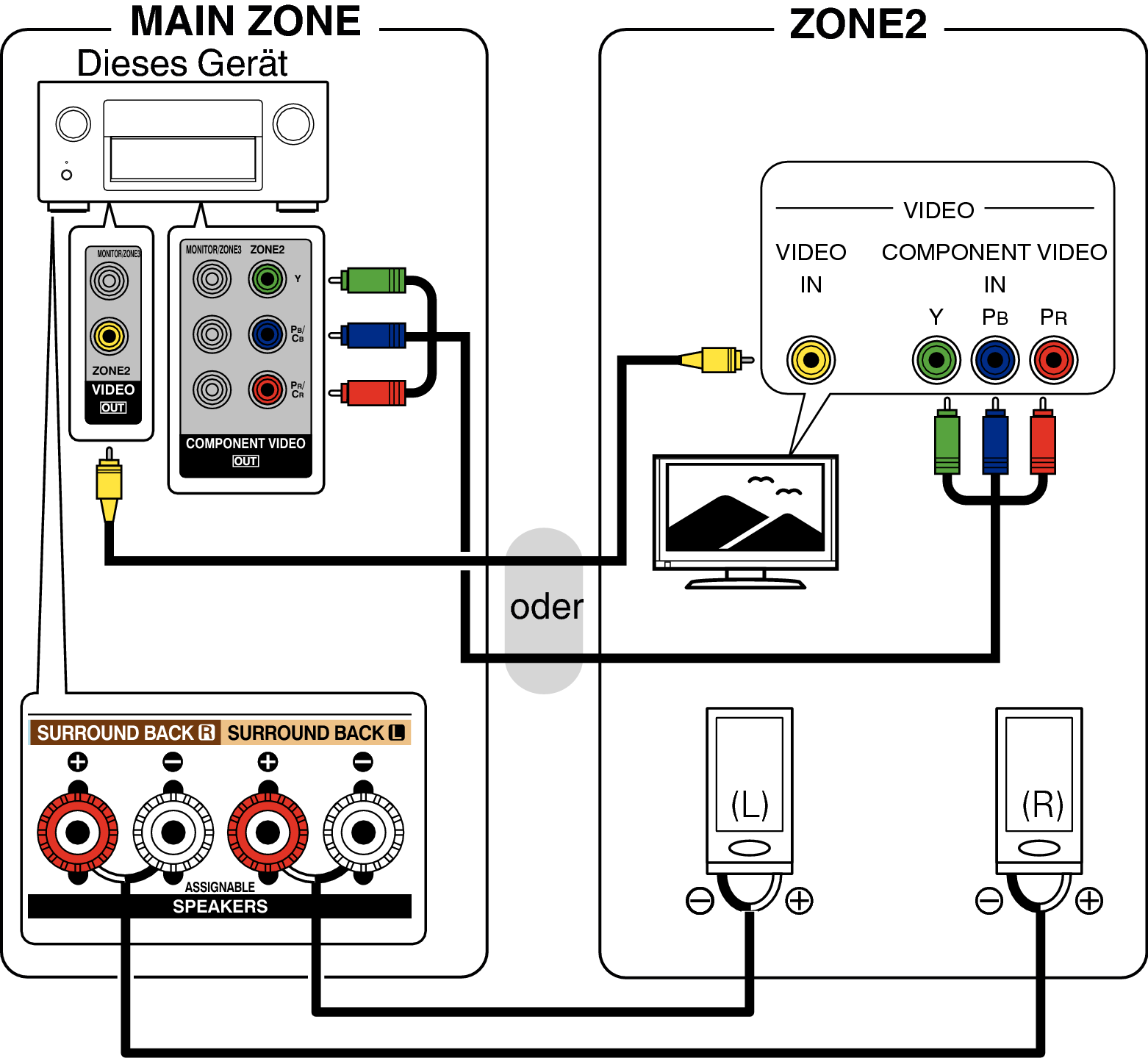 Wenn für “Zuweisung” im Menü eine der folgenden Einstellungen vorgenommen wurde, wird Audio über die Lautsprecher in ZONE2 oder ZONE3 ausgegeben. Link