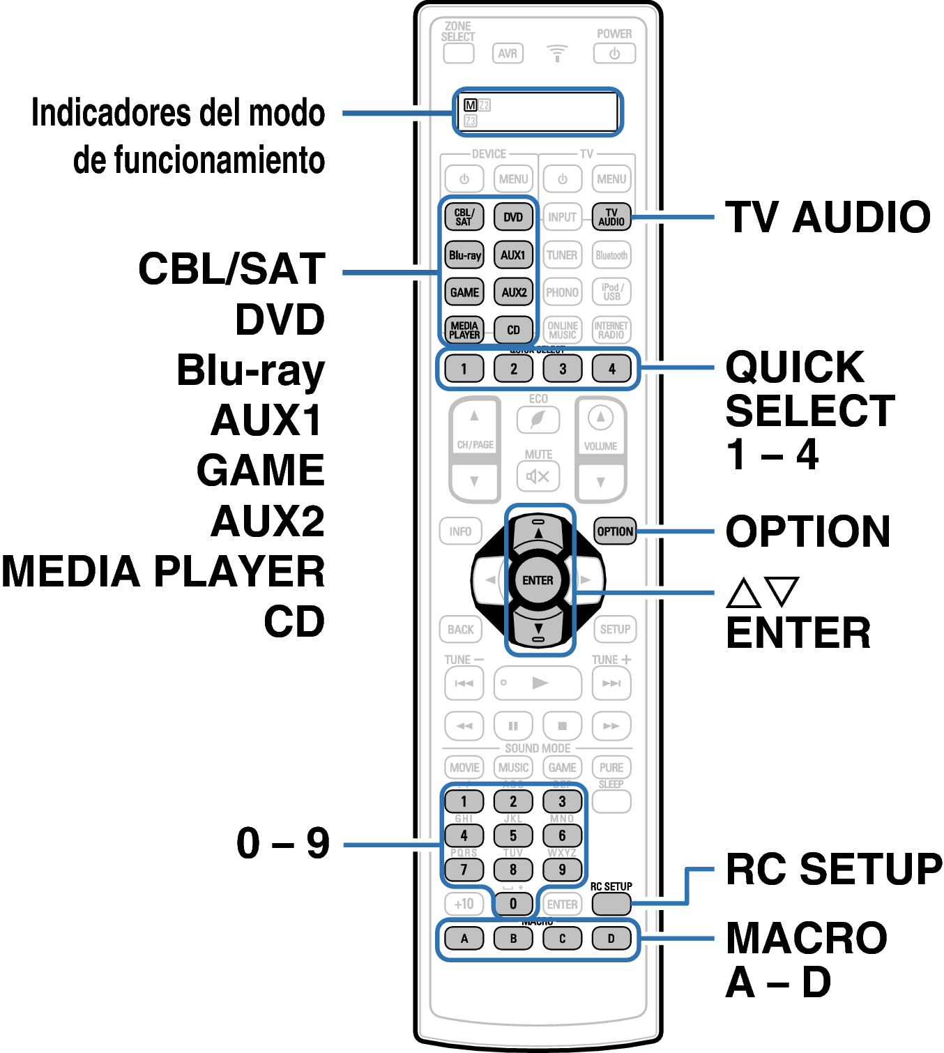 Botones en el mando a distancia utilizados para esta operación