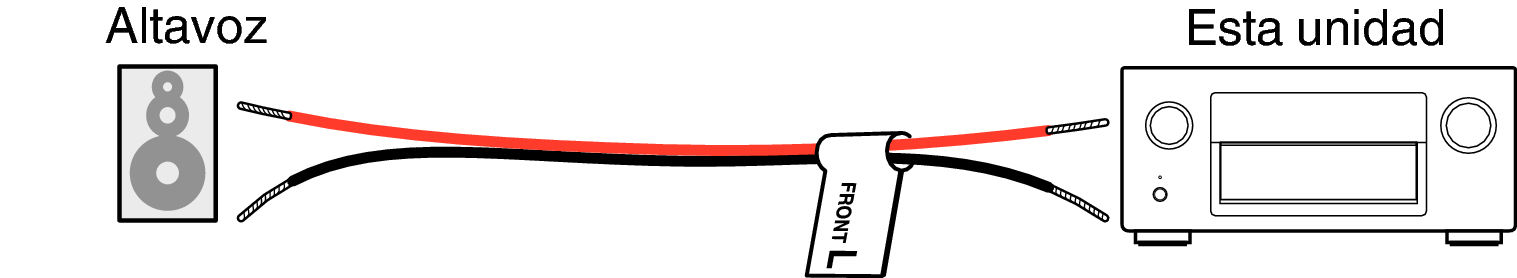 Entonces, realice la conexión, de manera que el color del terminal del altavoz coincida con la etiqueta del cable del altavoz.