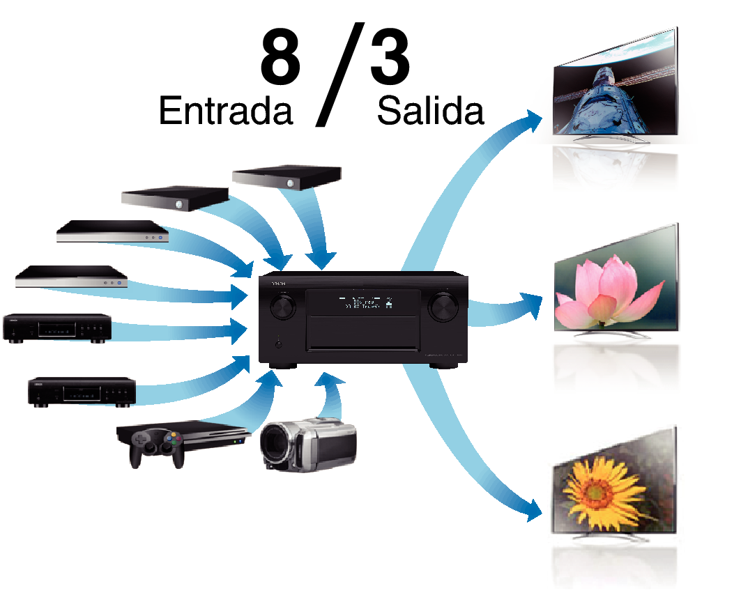 Las conexiones HDMI permiten la conexión a varios dispositivos AV digitales (8 entradas, 3 salidas)
