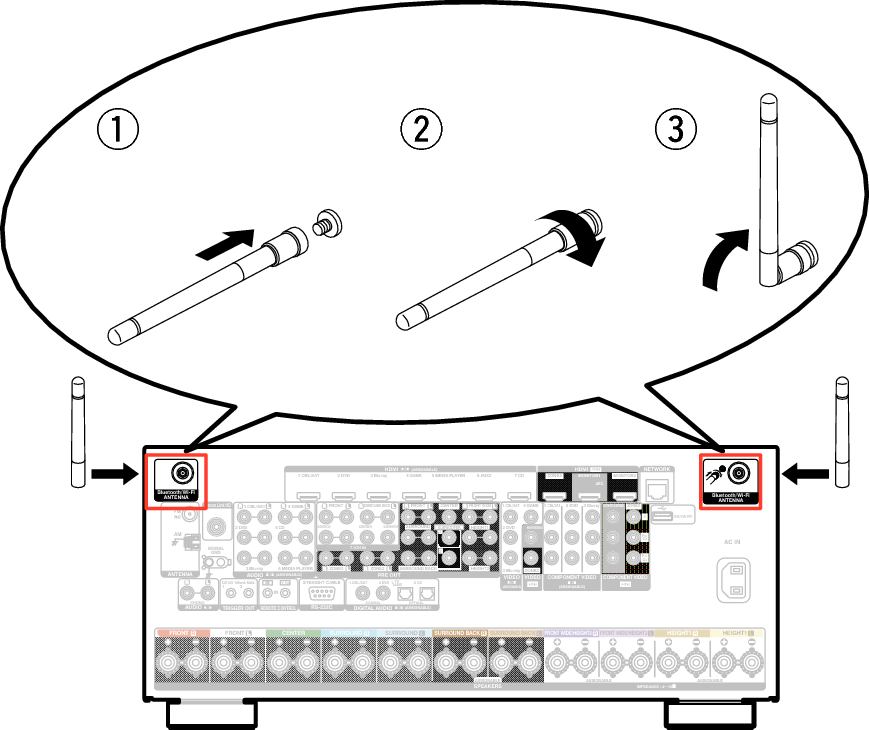 Utilisé pour connecter les antennes externes incluses pour une connexion Bluetooth/sans fil lors de la connexion à un réseau local sans fil, ou lors de la connexion à un appareil portable via Bluetooth. lien