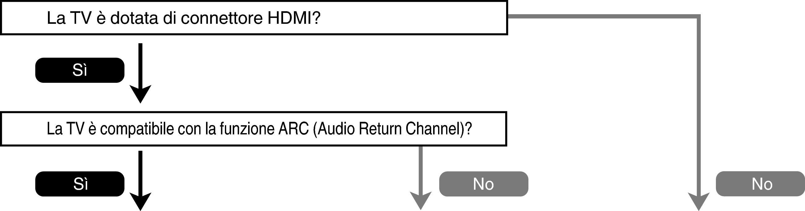 Collegamento 1: TV dotata di connettore HDMI e compatibile con la funzione ARC (Audio Return Channel)