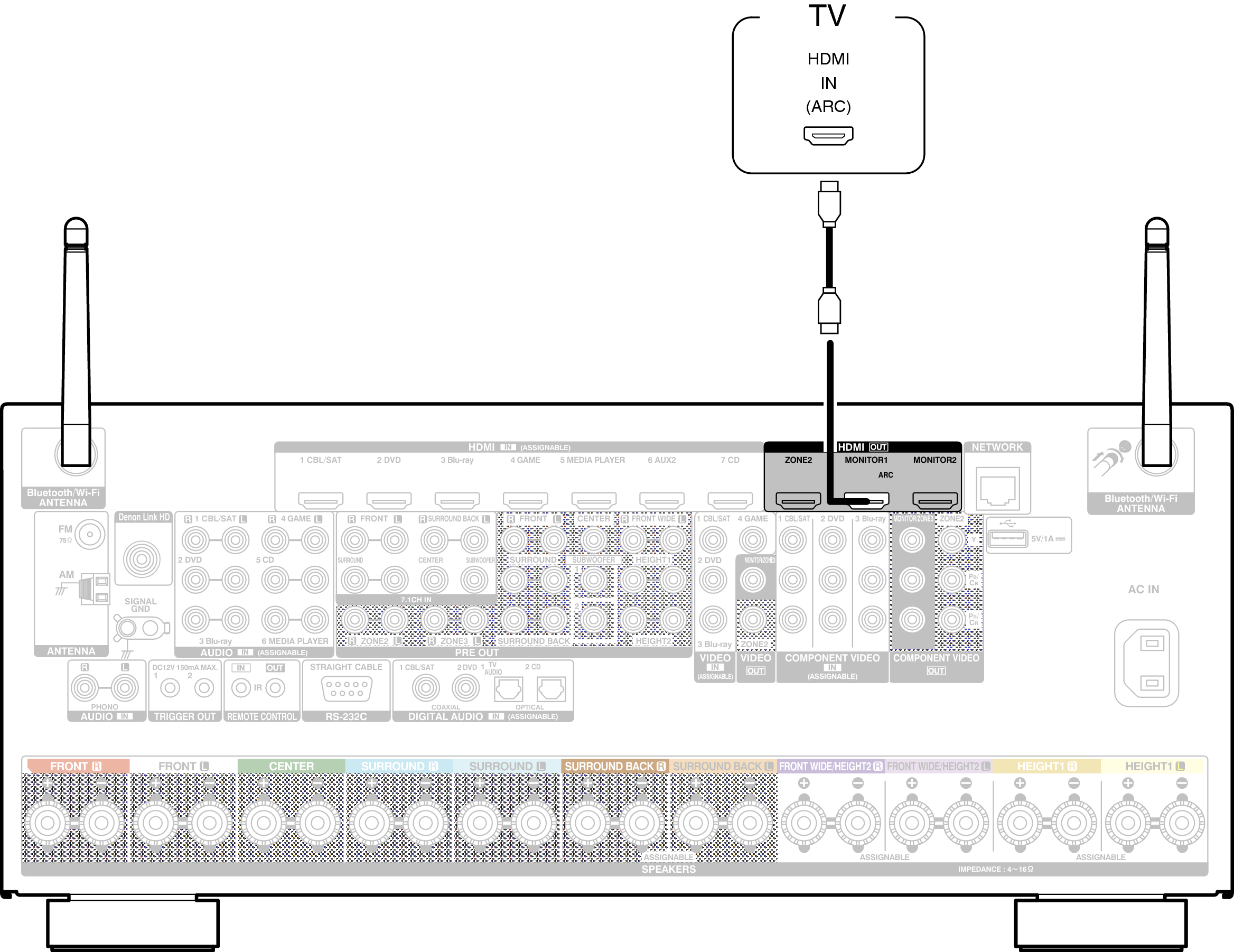 Gebruik een HDMI-kabel voor het aansluiten van een tv die compatibel is met de ARC-functie, op dit toestel.