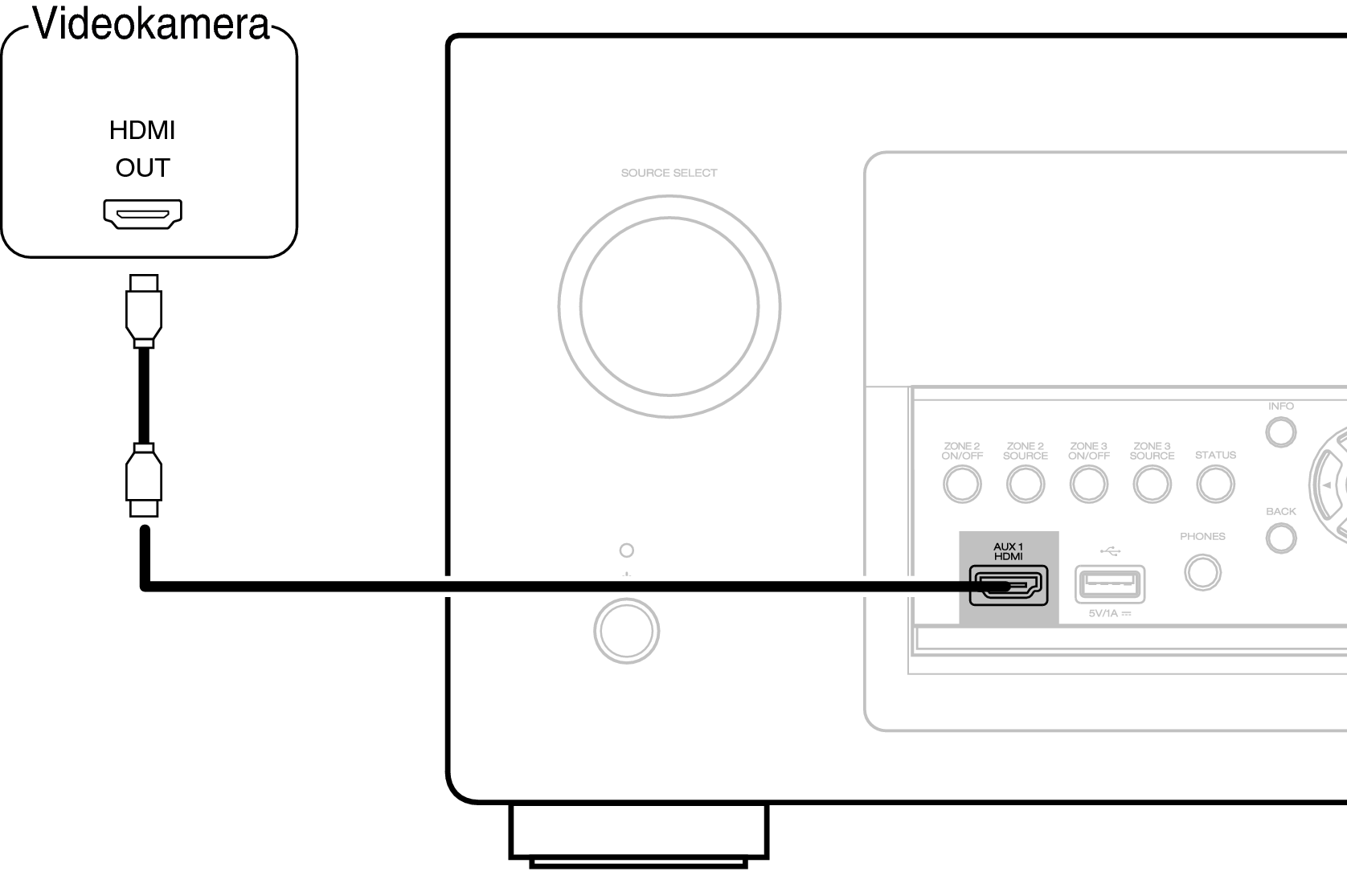 I den här beskrivningen används anslutning till en videokamera som exempel.