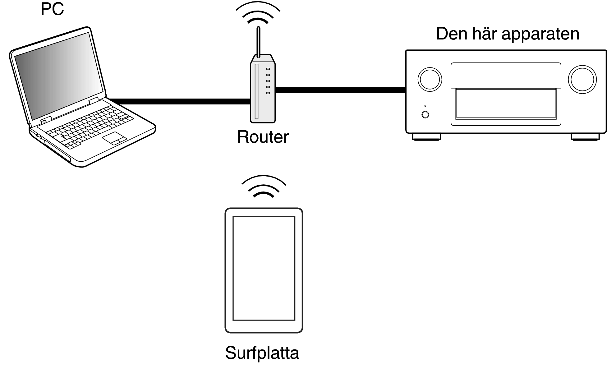 Den här enheten och datorn måste vara rätt anslutna till nätverket för att webbkontrollfunktionen ska kunna användas. (Ansluta till ett hemmanätverk (LAN)länk)