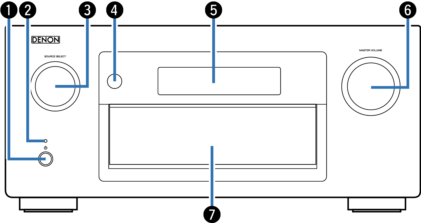 Används för att välja mellan på/av (standby) i MAIN ZONE (det rum där den här enheten står). länk