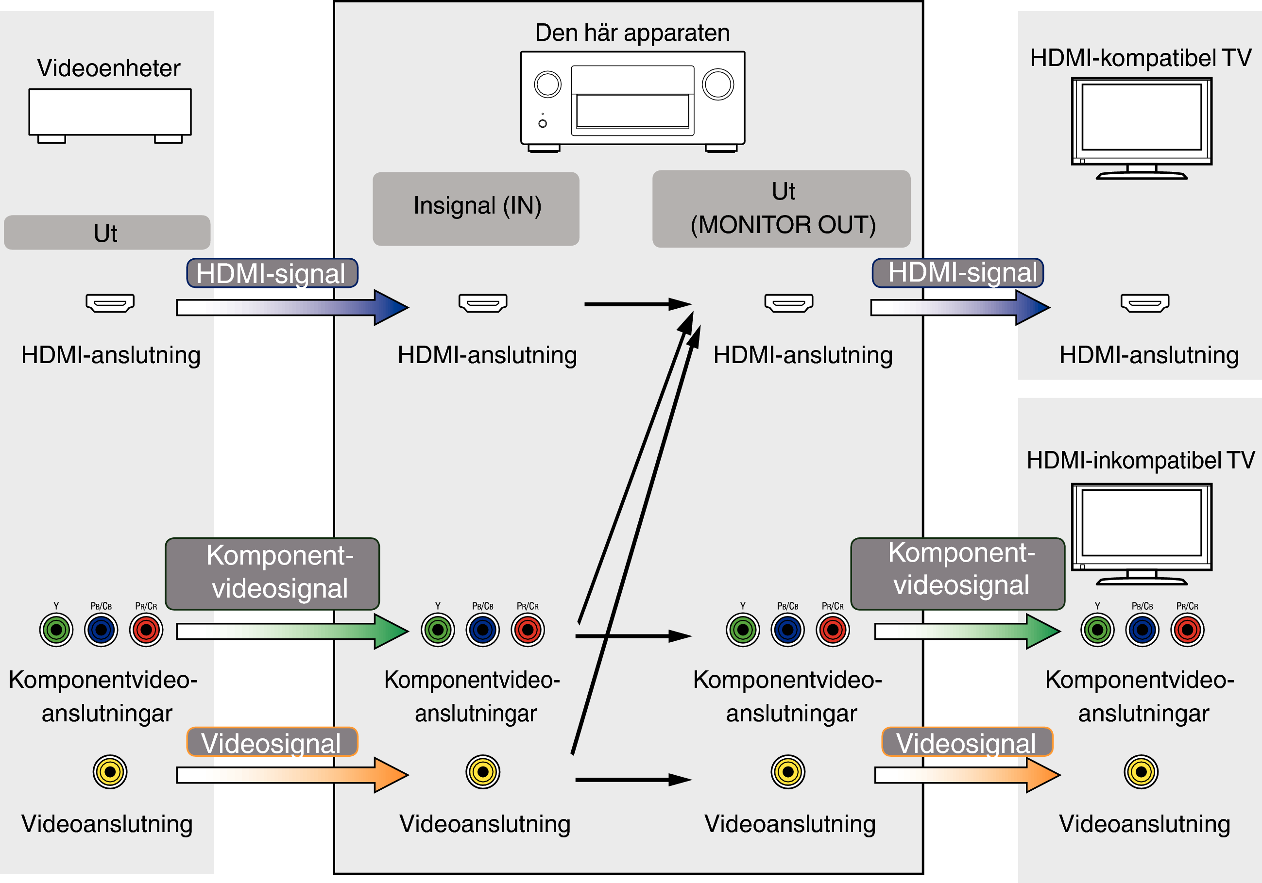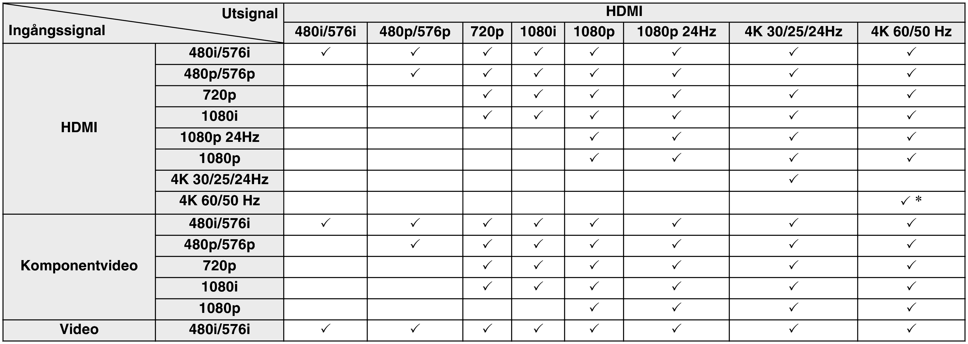 Den här enheten konverterar automatiskt inkommande videosignaler enligt nedanstående schema innan de skickas till TV:n.