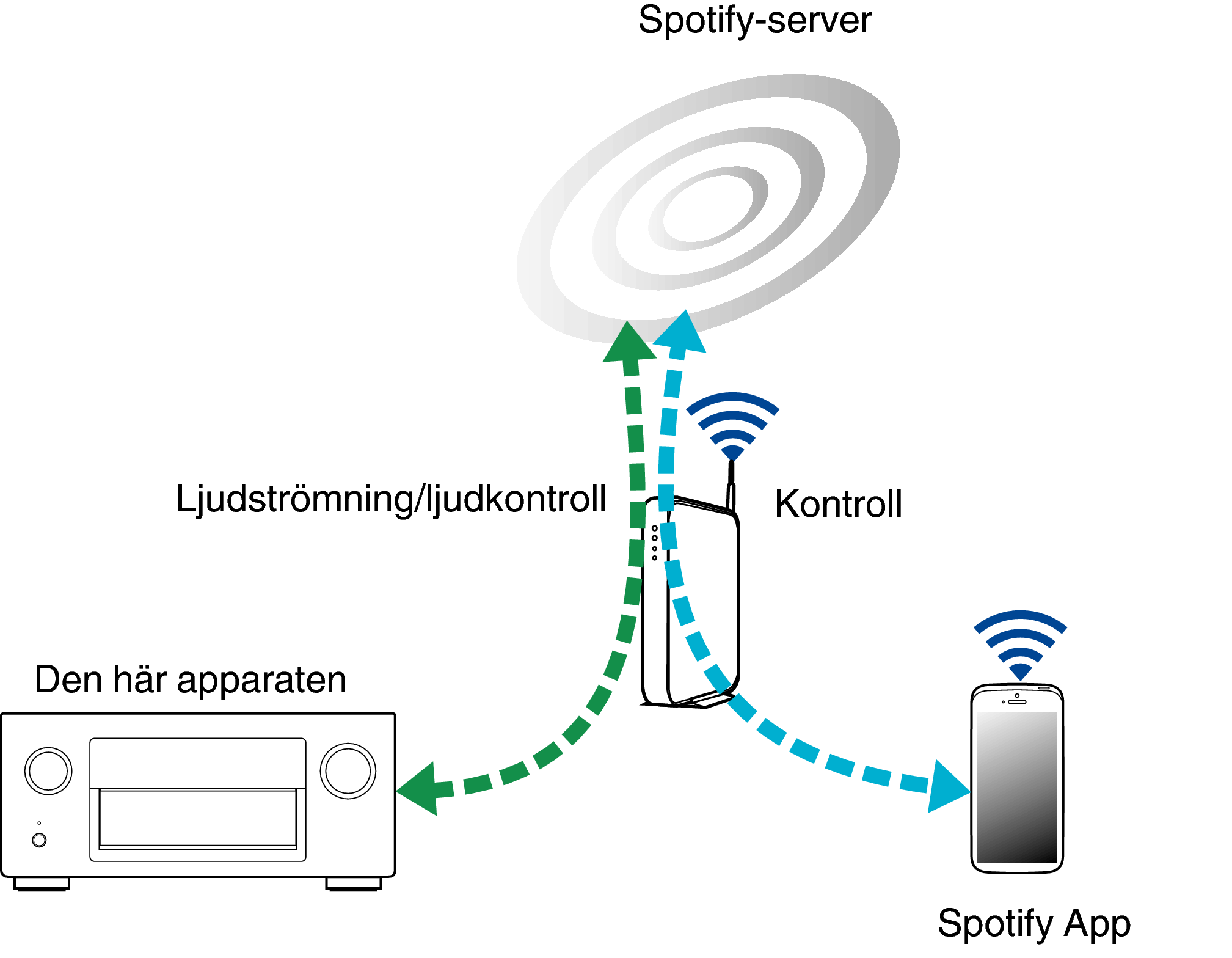 Spotify är världens mest populära streamingtjänst. Om du prenumererar på Spotify Premium kan du kontrollera din nya högtalare med din mobiltelefon eller surfplatta. Eftersom Spotify är inbyggt i högtalaren kan du fortfarande svara i telefon eller använda andra appar. Musiken stannar aldrig.