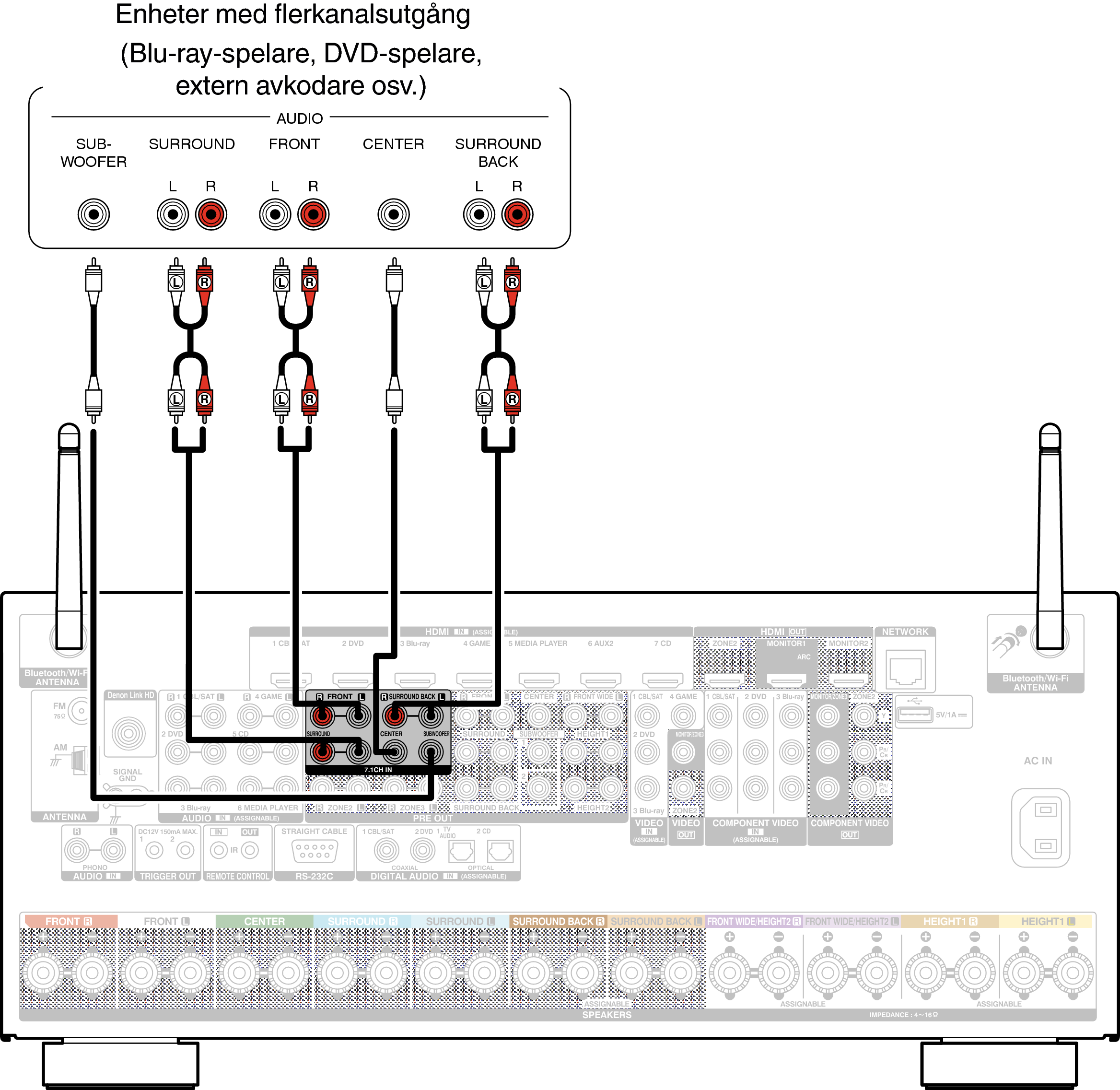 Videosignaler kan anslutas på samma sätt som Blu-ray-spelare/DVD-spelare.