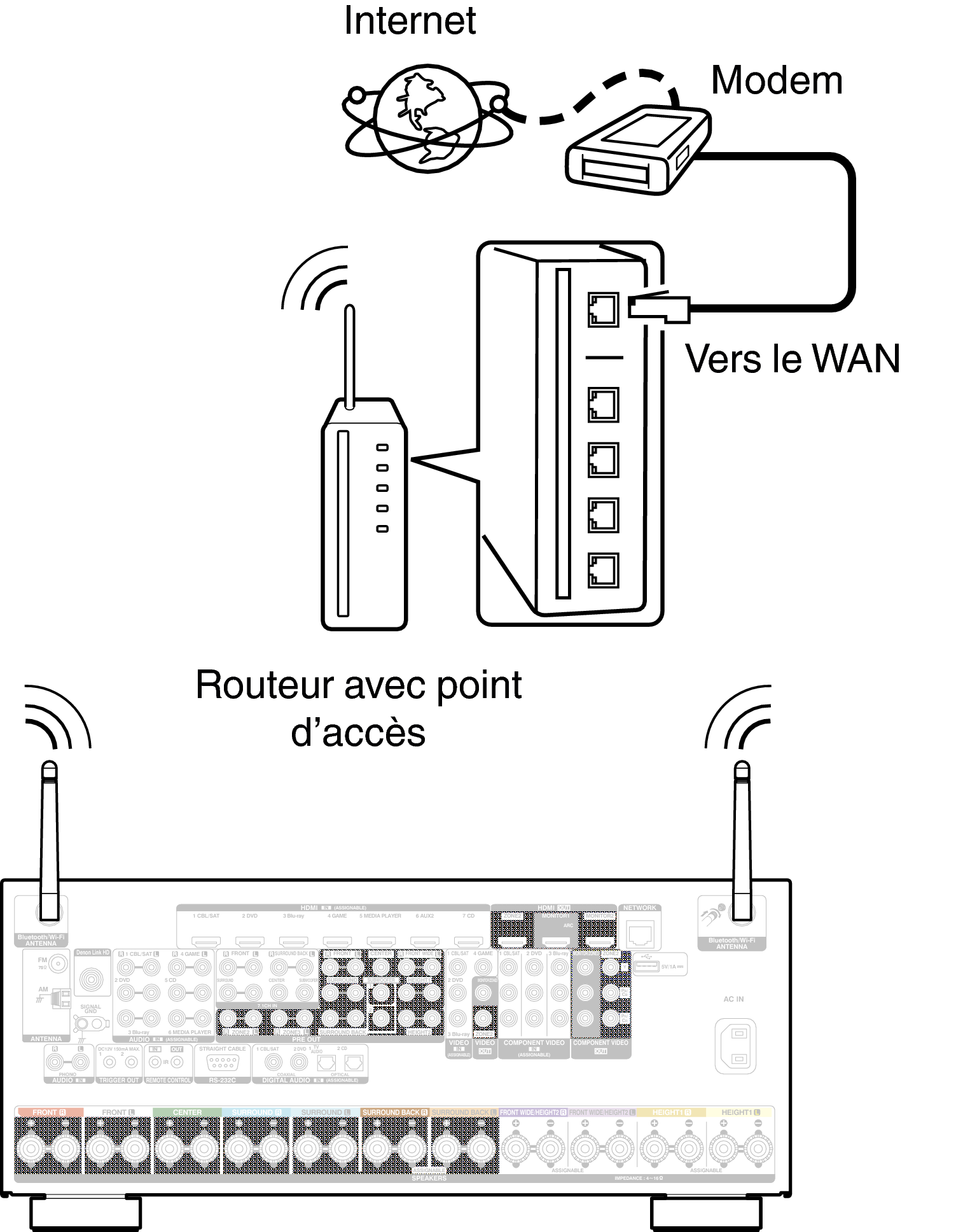 Ne connectez pas une borne NETWORK directement au port LAN/à la borne Ethernet de votre ordinateur.