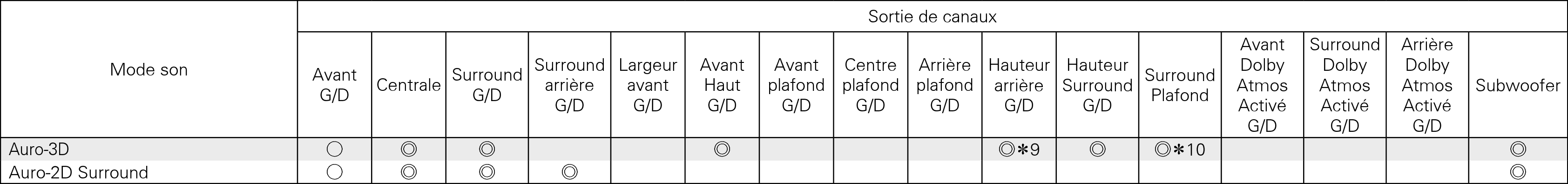 Le mode son comprend “DTS Neo:X” et les mode de son qui ont “+Neo:X” dans le nom du mode son.
