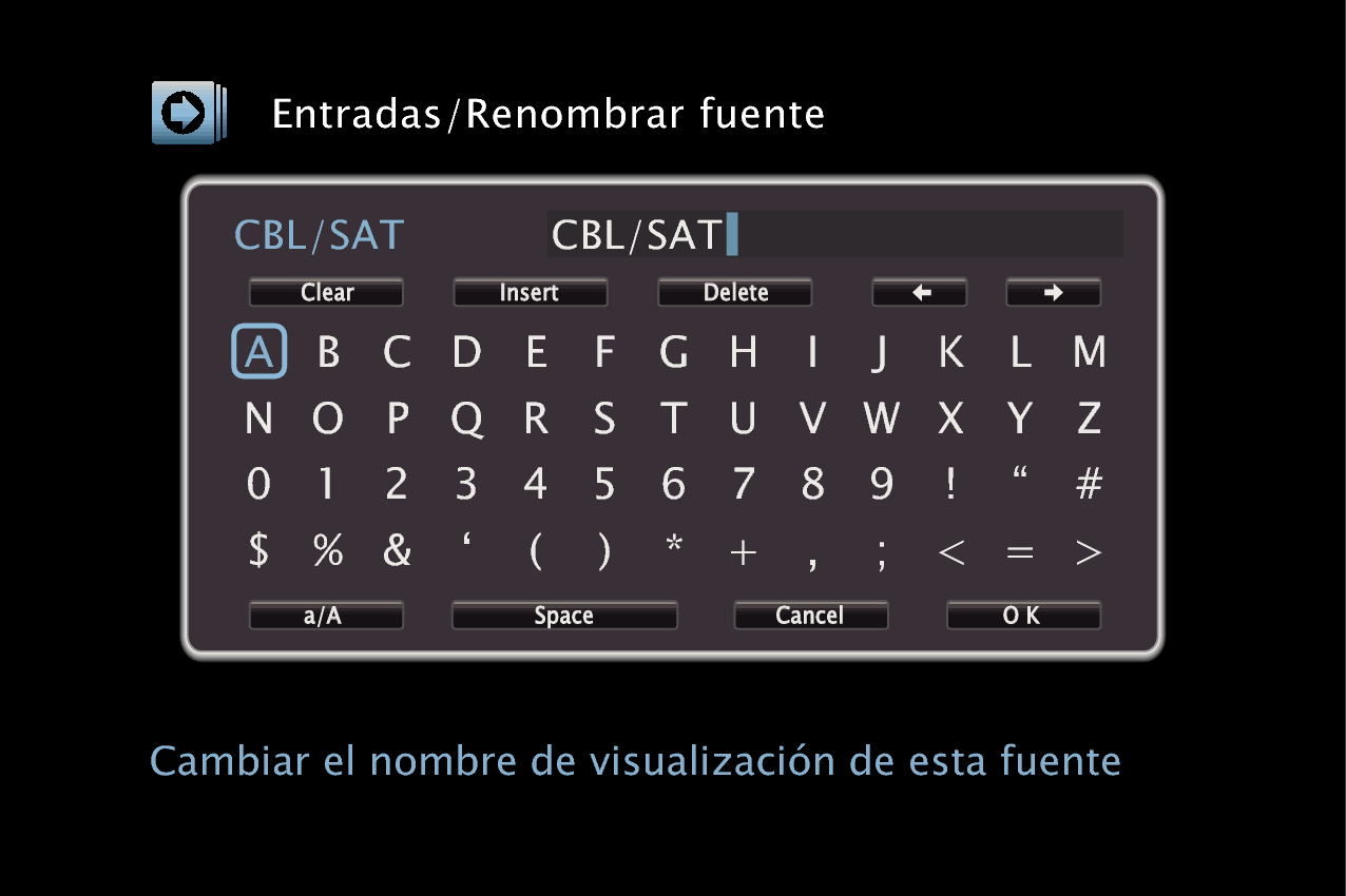 Seleccione un carácter que desee introducir con el shirosankaku shirosankaku-Reverse White-Arrow-Left   White-Arrow-Right luego pulse ENTER.