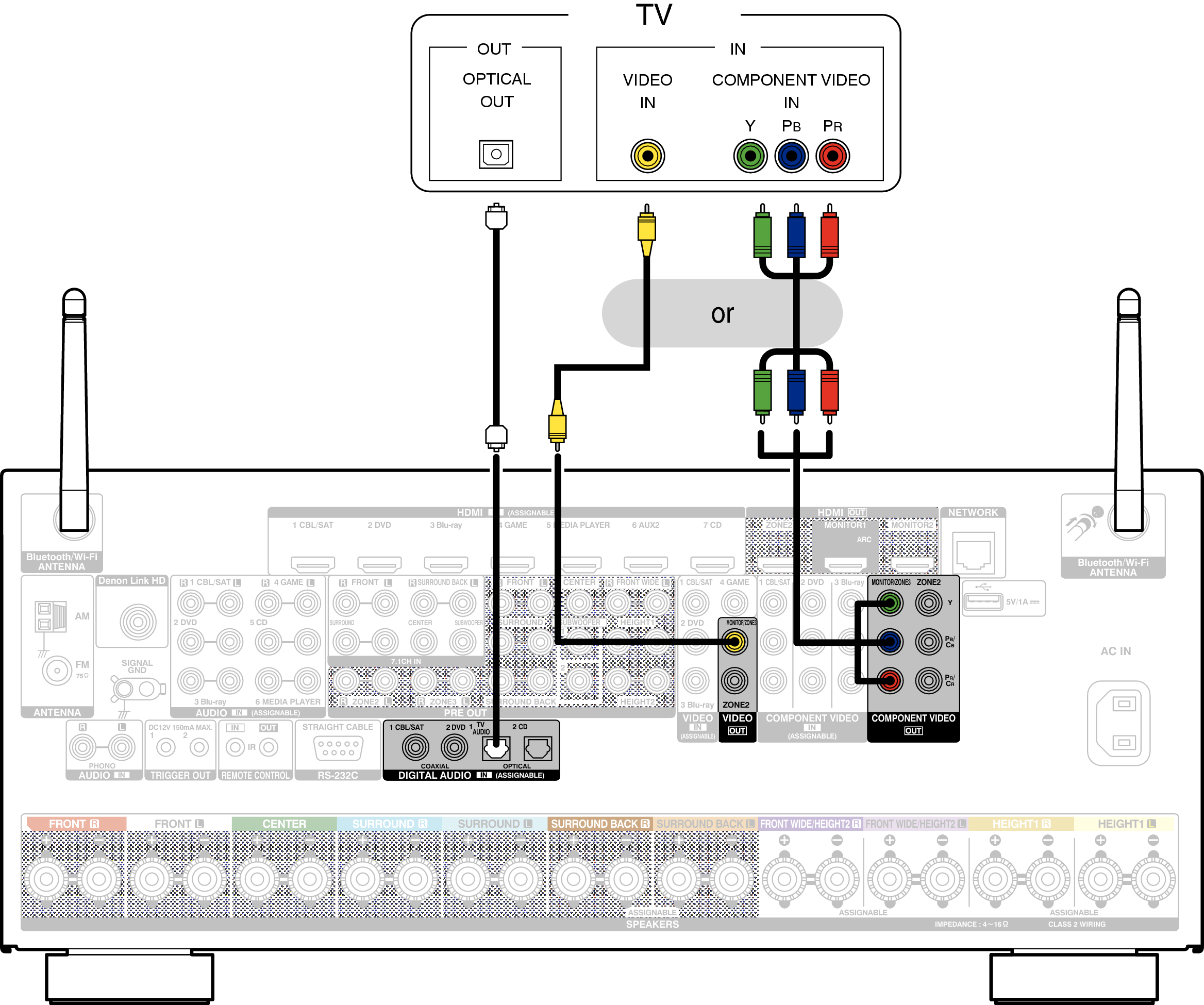 Utilice un cable de vídeo por componentes o de vídeo para conectar el TV a esta unidad.