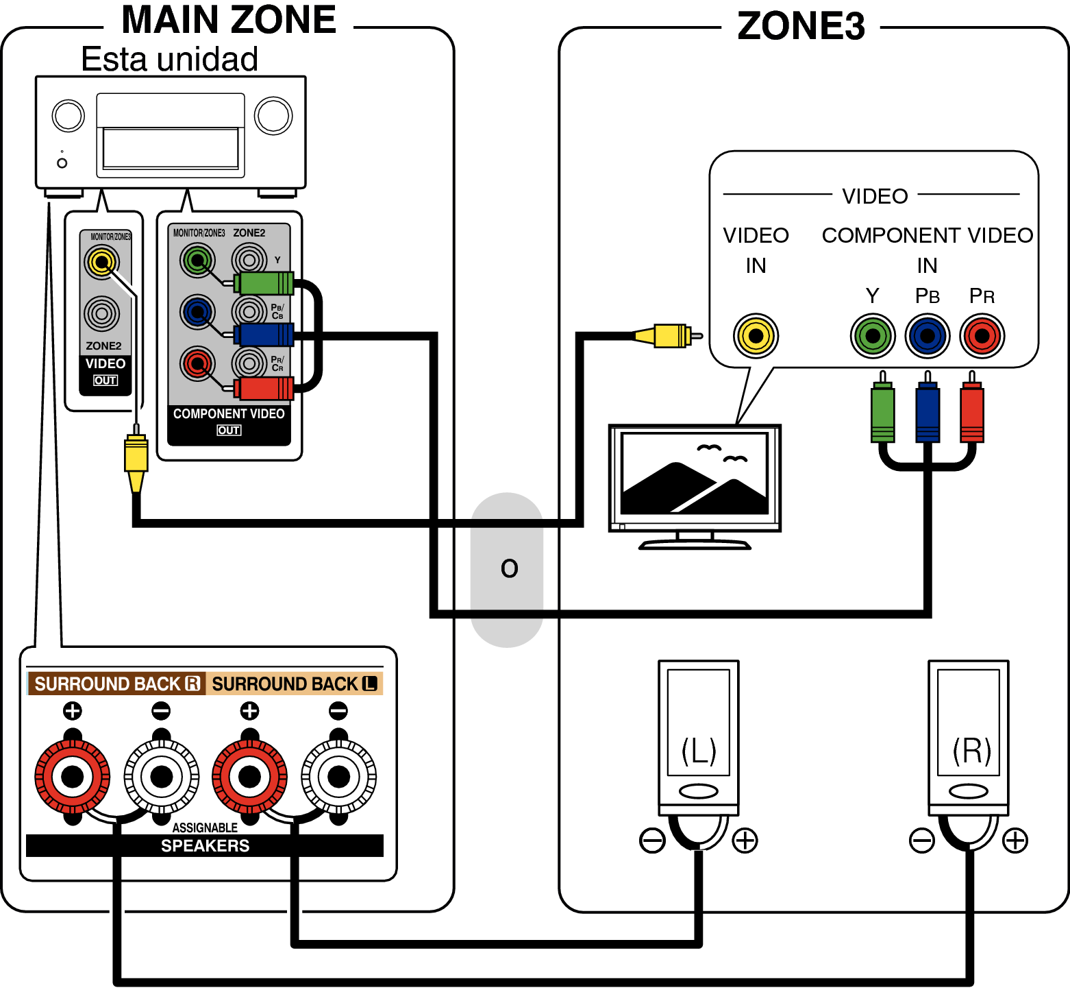 Cuando la opción “Salida vídeo analog.” del menú se ajusta como “ZONE3”, el conector de salida de vídeo por componentes y vídeo transmite la señal de vídeo en ZONE3. enlace