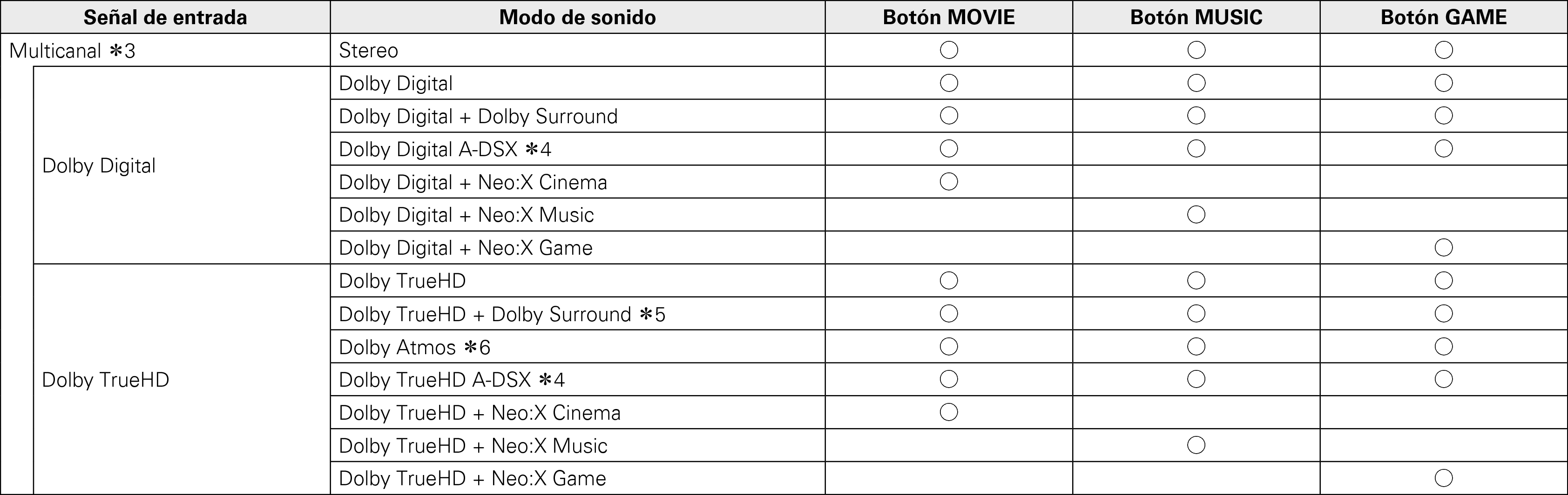Puede seleccionarse cuando la señal de entrada contiene Dolby Atmos.
