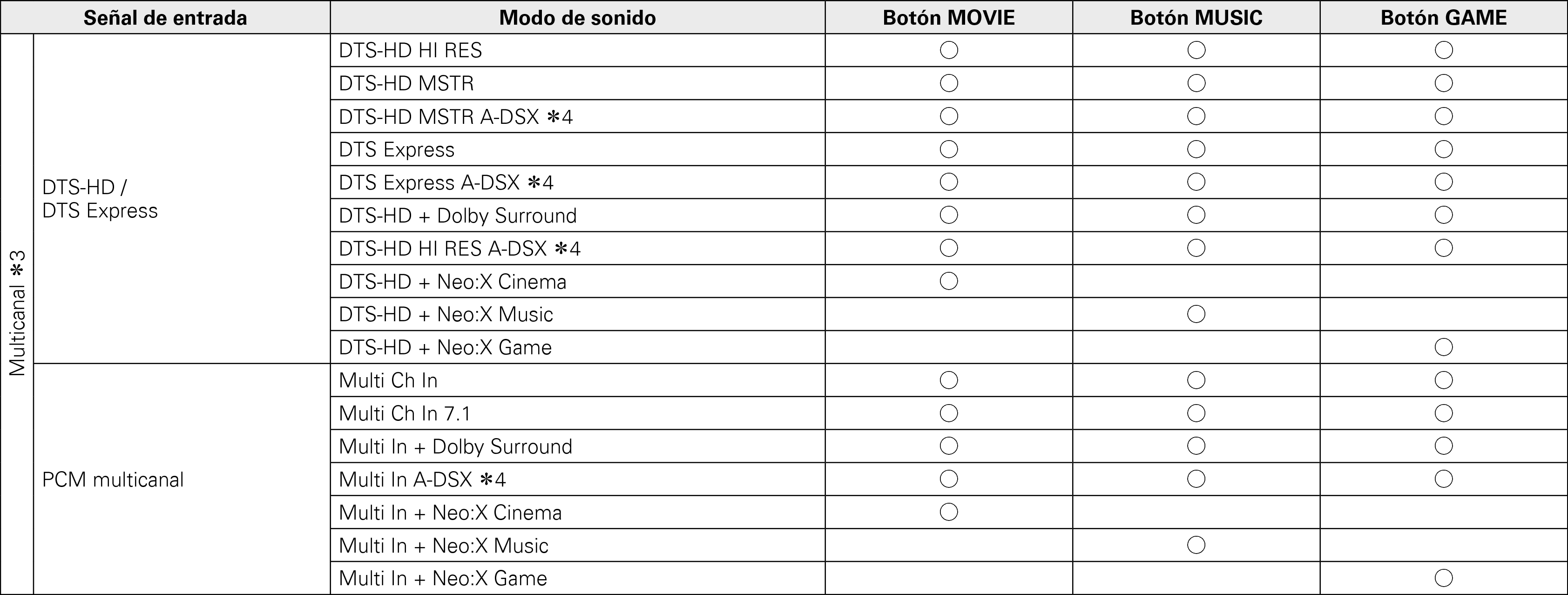 Este modo se puede seleccionar cuando se reproducen fuentes multicanal PCM/DSD.