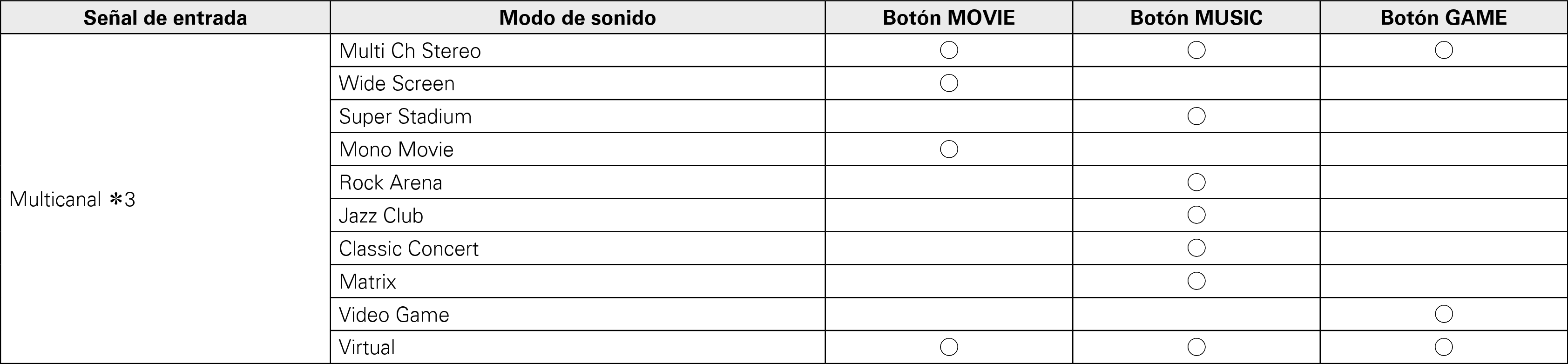 Cuando se introducen señales multicanal, se reducen a sonido de 2 canales sin procesamiento de sonido surround adicional.