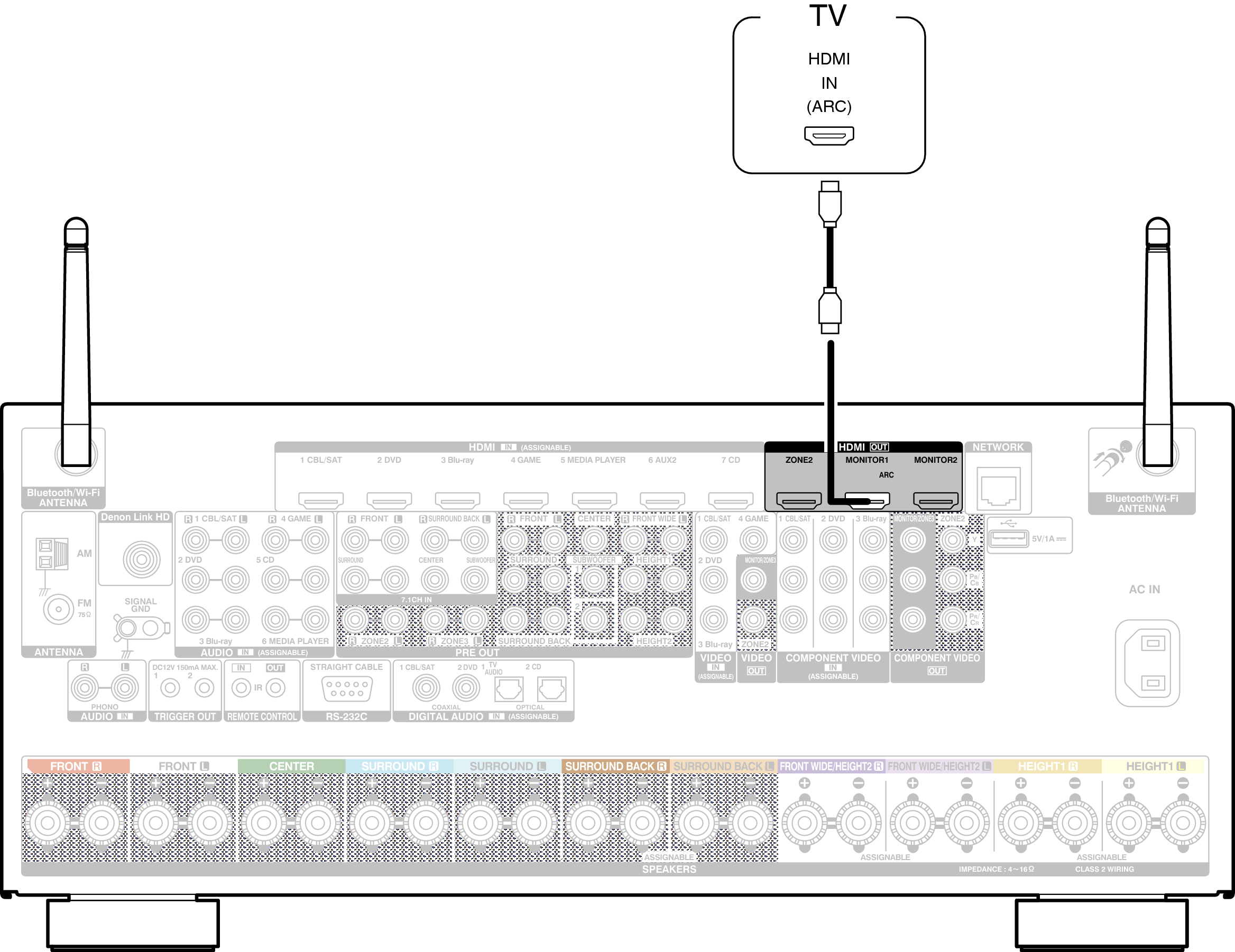Lors de l’utilisation de la fonction de contrôle HDMI, connectez au borne HDMI MONITOR 1.