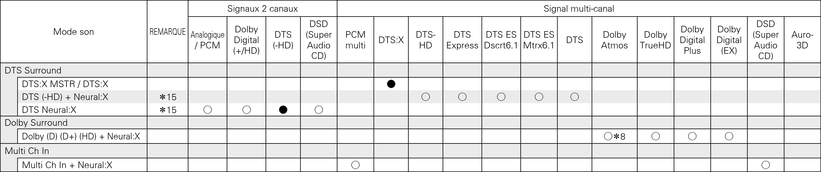 Vous pouvez sélectionner “DTS:X” ou “DTS Neural:X” si la mise à jour vers DTS:X a été effectuée.