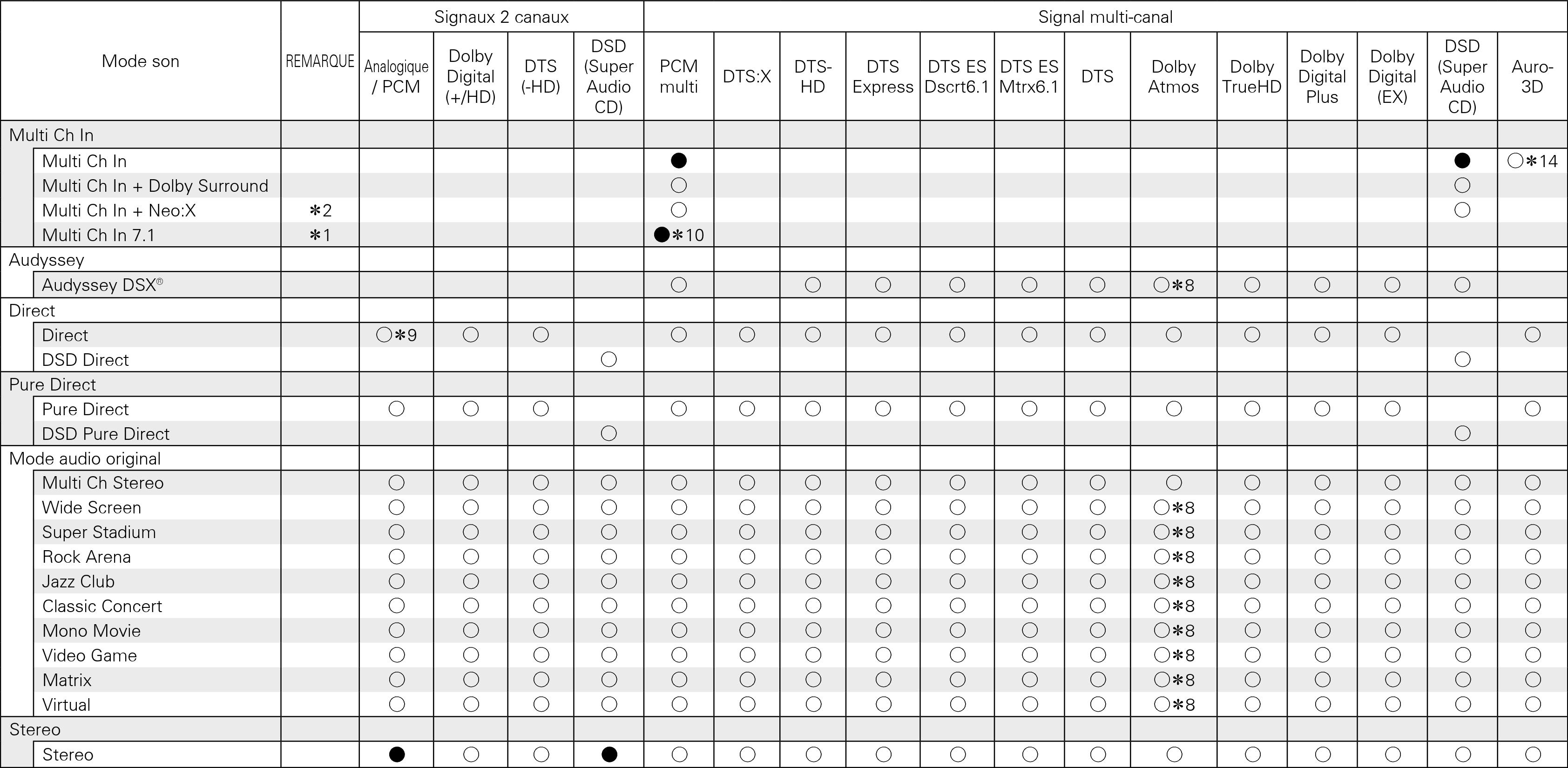Cet élément ne peut pas être sélectionné lorsque vous utilisez en entrée un format DTS(-HD) avec une fréquence d’échantillonnage supérieure à 48 kHz.