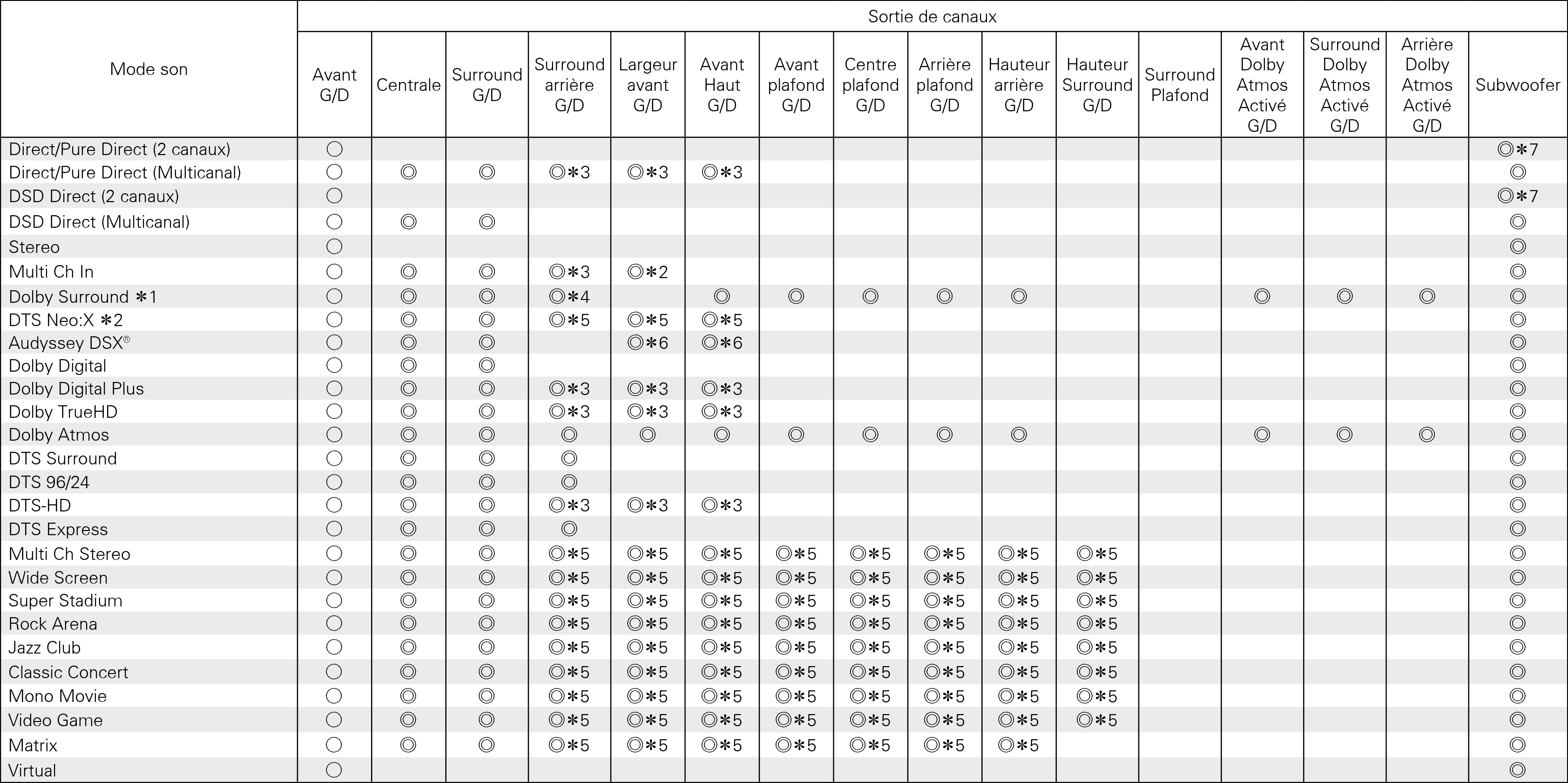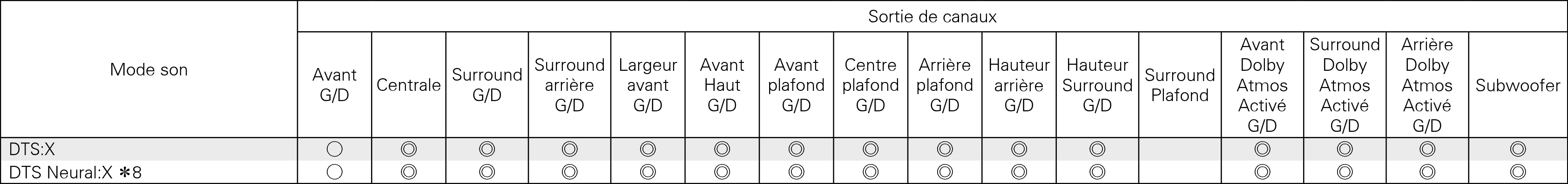 Le mode son comprend “DTS Neo:X” et les mode de son qui ont “+Neo:X” dans le nom du mode son.