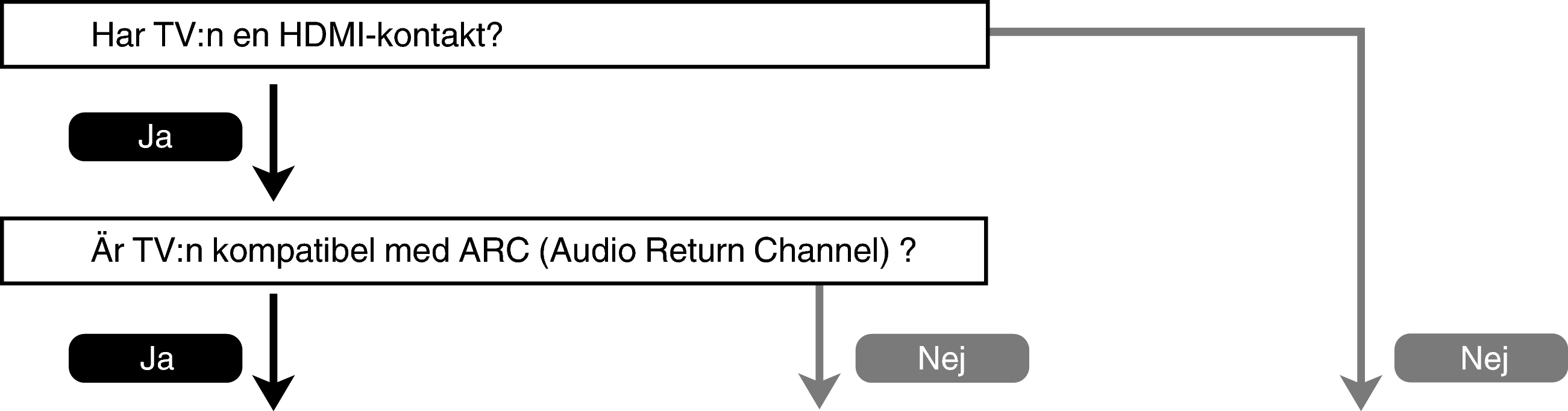 Med ARC (Audio Return Channel)-funktionen spelar du upp ljudet från TV:n på den här enheten genom att TV-ljudsignalen skickas till enheten via HDMI-kabel.