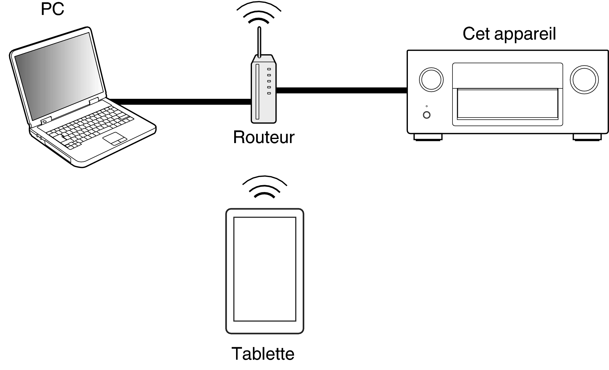 Cet appareil et l’ordinateur ou une tablette doivent être correctement connectés au réseau afin d’utiliser la fonction de contrôle Internet. (Connexion à un réseau domestique (LAN)lien)