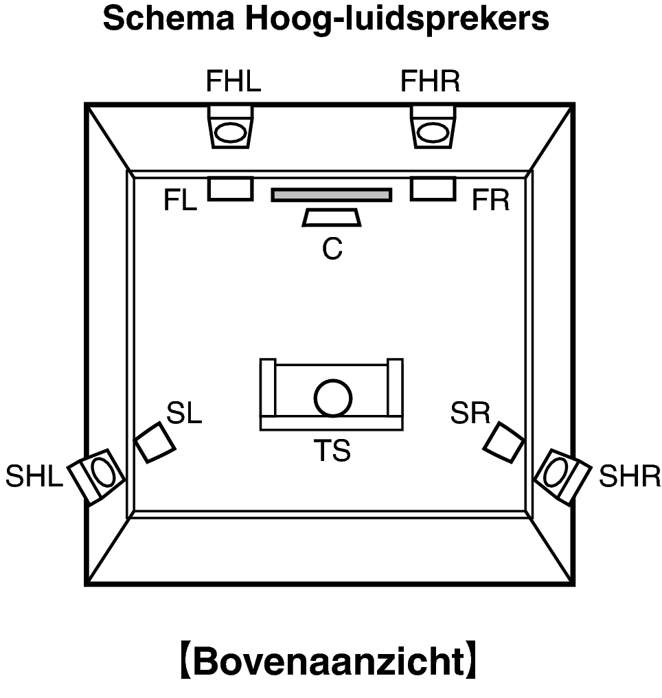 Lay-out inclusief hoogteluidsprekers en plafondluidsprekers