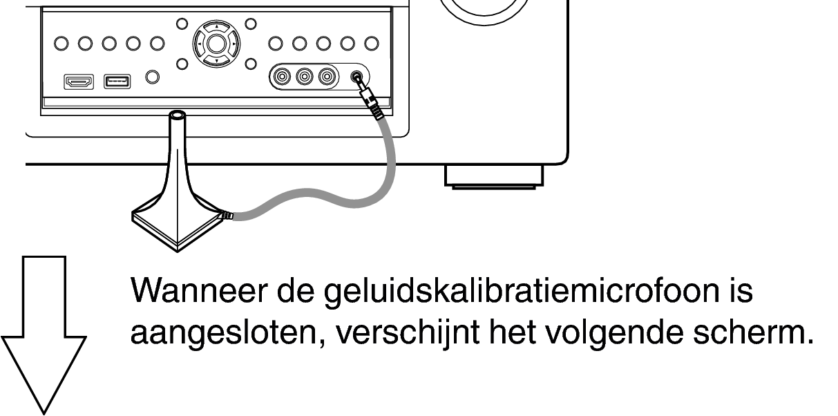 Wanneer u de geluidskalibratiemicrofoon installeert, wijst u de punt van de microfoon naar het plafond en stelt u de hoogte af volgens de hoogte van de oren van een zittende luisteraar.