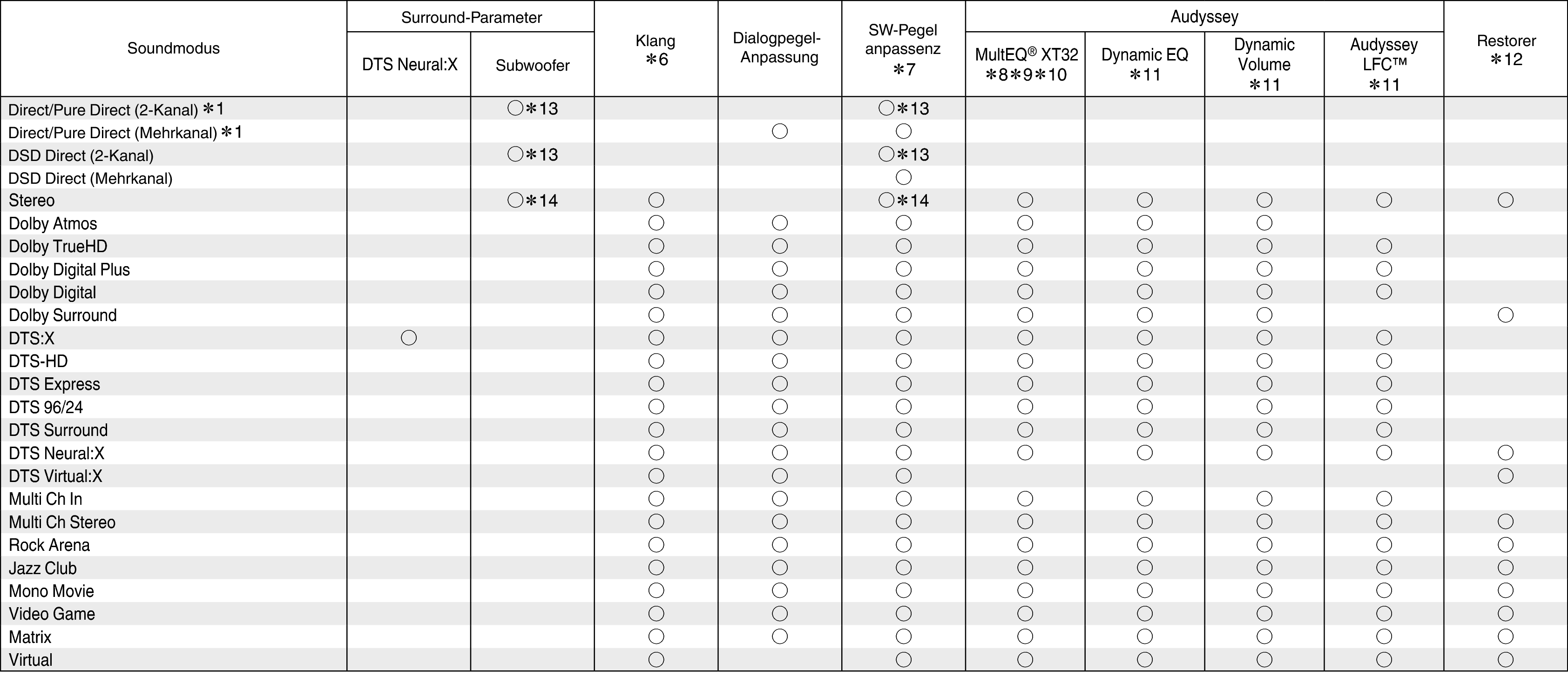 ∗1 - ∗5: Klangmodi und Surround-ParameterLink