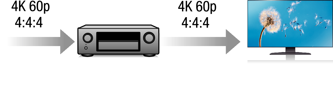 Bei Verwendung von 4K Ultra HD (High Definition) wird für Videosignale eine Eingangs-/Ausgangsgeschwindigkeit von 60 Bildern pro Sekunde (60p) erreicht. Wenn Sie das Gerät mit einem Fernseher verbinden, der mit 4K Ultra HD und dem 60p-Videosignaleingang kompatibel ist, werden auch Videos mit schnellen Bewegungen durch die hochauflösenden Bilder besonders realistisch dargestellt.