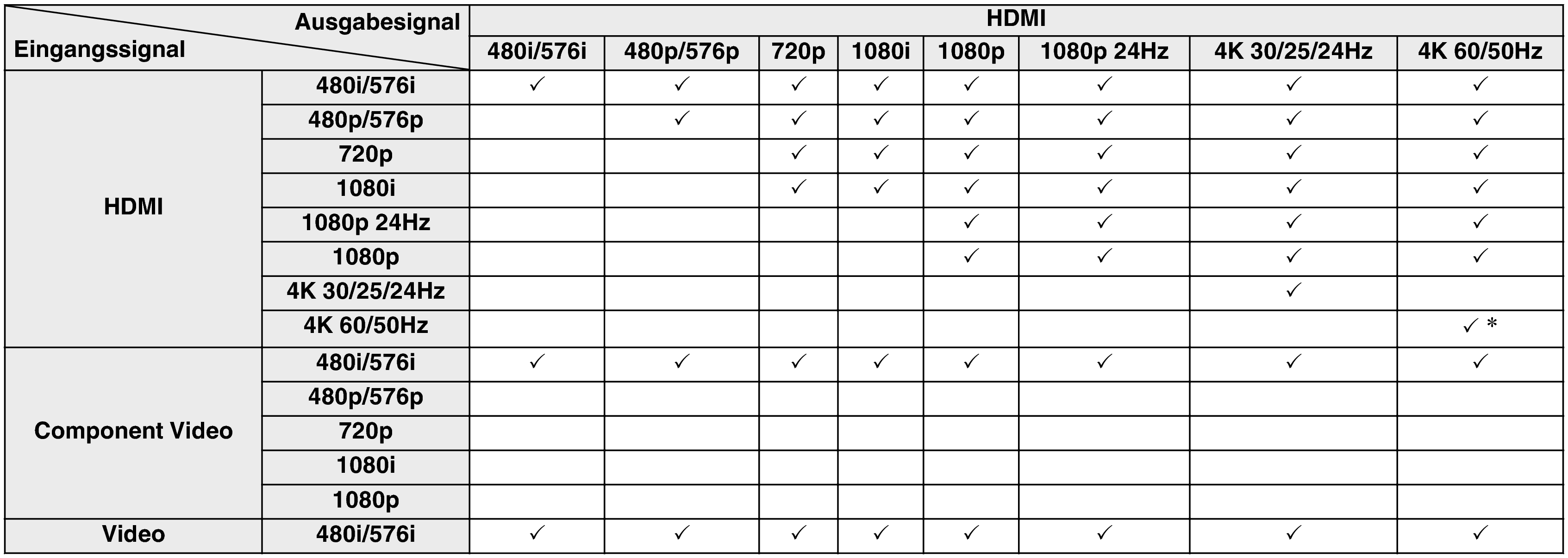 Von den Component Video-Signalen, die womöglich genutzt werden, werden lediglich die Signale 480i und 576i in HDMI-Signale umgewandelt.