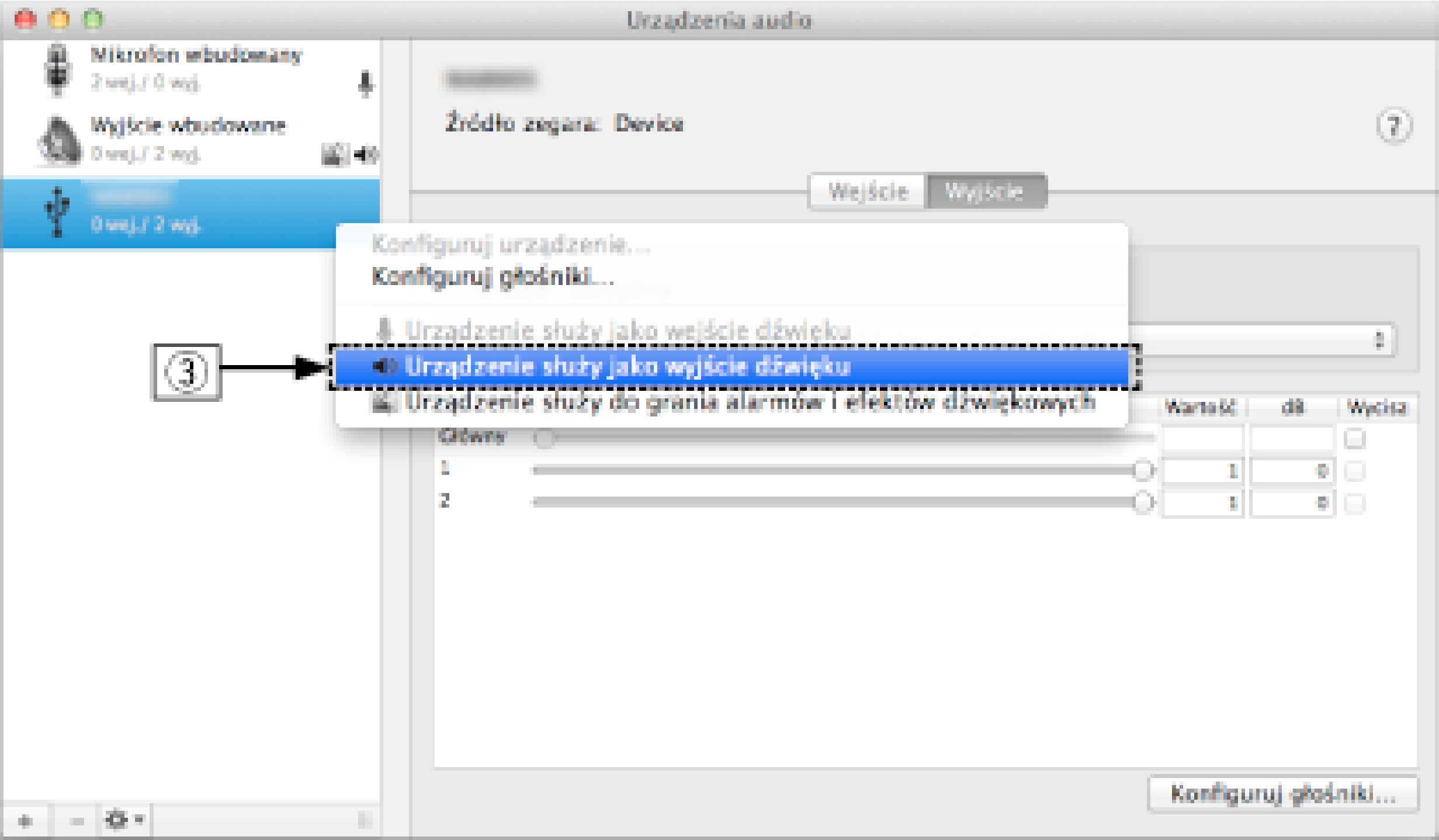 Ustawienia urządzenia audio (tylko Mac OS X)
