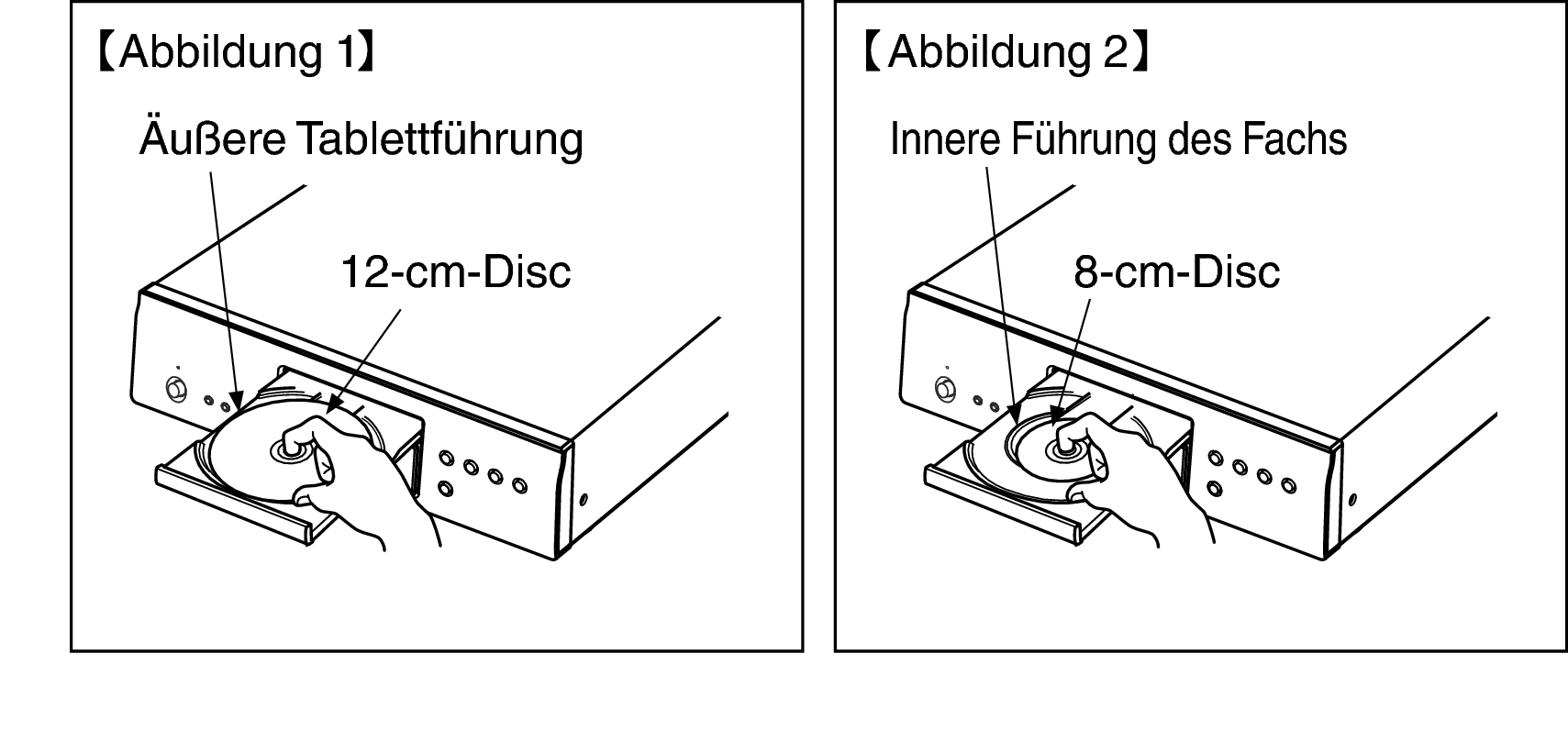 Legen Sie die Discs gerade ein (12-cm-Discs in die äußere Führung des Fachs (Abbildung 1), 8-cm-Discs in die innere Führung (Abbildung 2)).