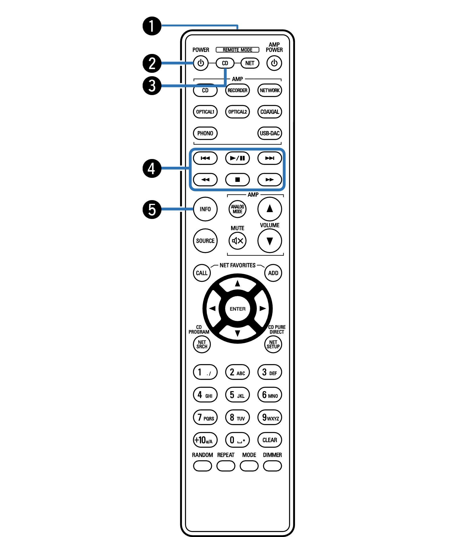 Auswahltaste für Fernbedienmodus (REMOTE MODE CD)