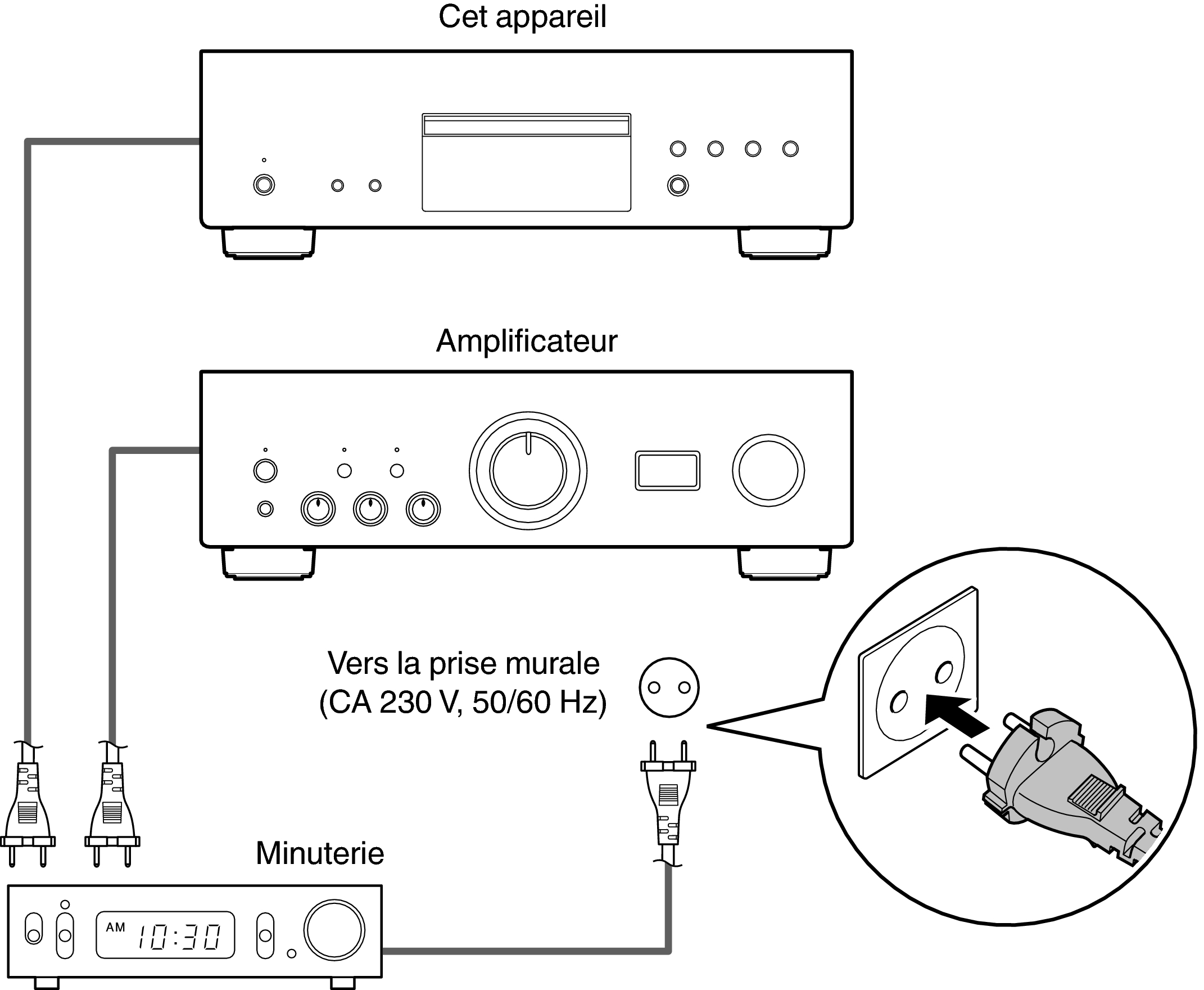 Cet appareil peut effectuer la lecture via une minuterie lorsqu’un amplificateur et une minuterie sont connectés à cet appareil. (Utilisation de la fonction de minuterielien)